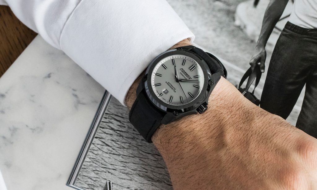 Švýcarské hodinky Formex Essence Leggera FortyOne Automatic Chronometer Cool Grey na první pohled zaujmou svým černým pouzdrem osazeným keramickou lunetou s efektním broušeným povrchem a výrazným lesklým, cementově šedým číselníkem. Jsou ideální volbou pro všechny fanoušky hodinek, kteří jsou zároveň vyznavači aktivního životního stylu a zároveň moderní podobou univerzálních hodinek vhodných pro jakoukoliv příležitost, vyznačujících se jednoduchými liniemi a skvělou přehledností.