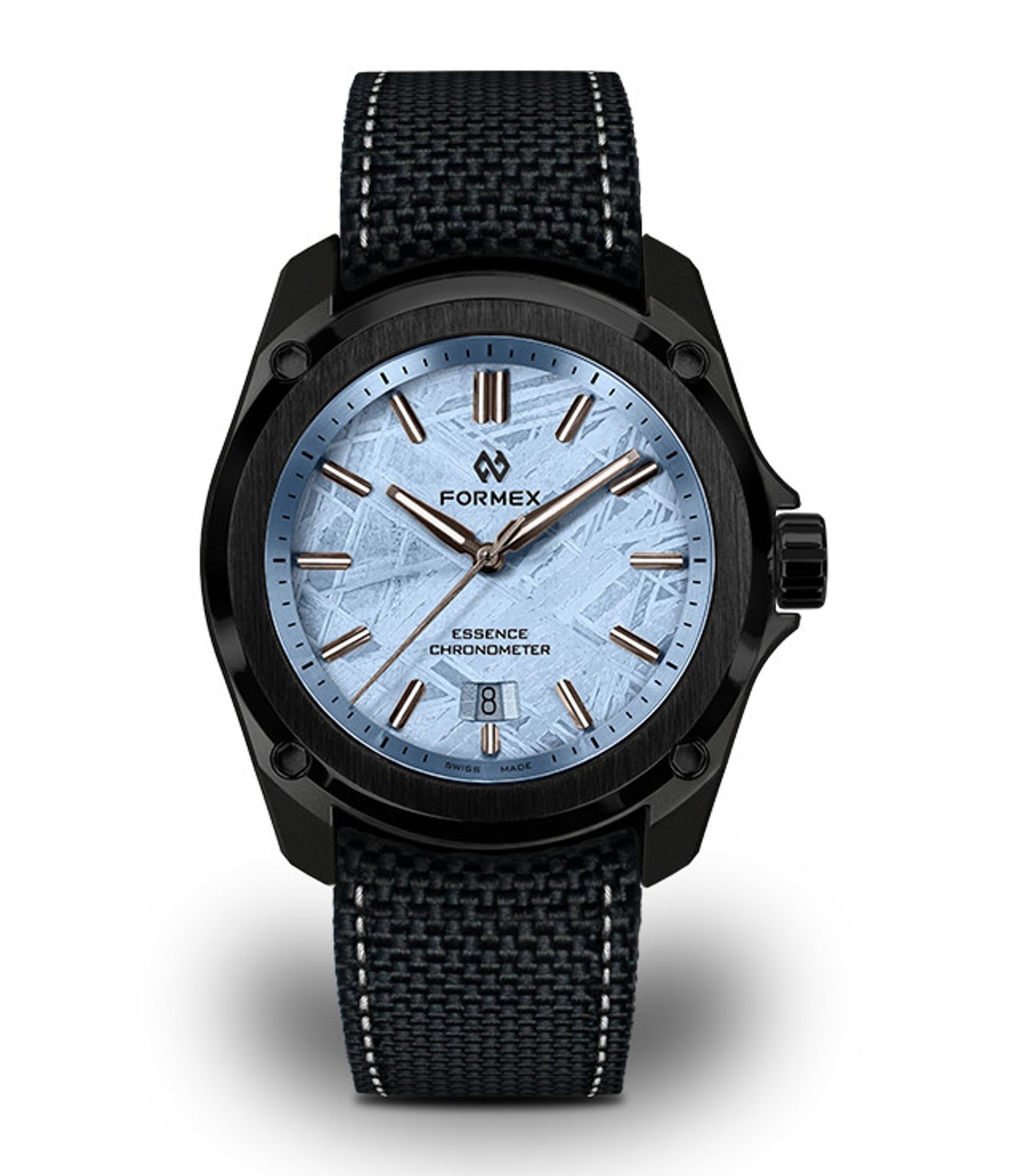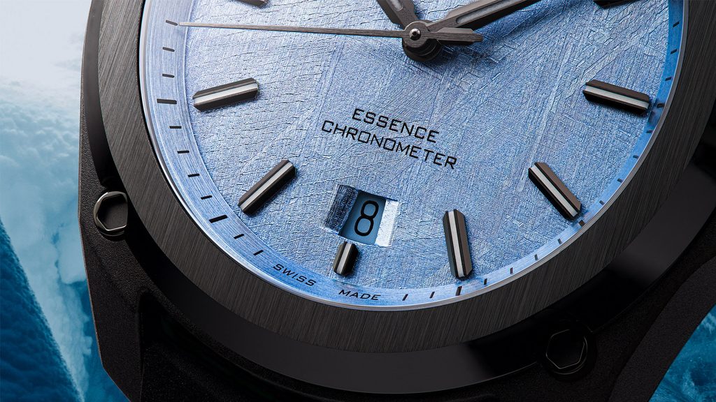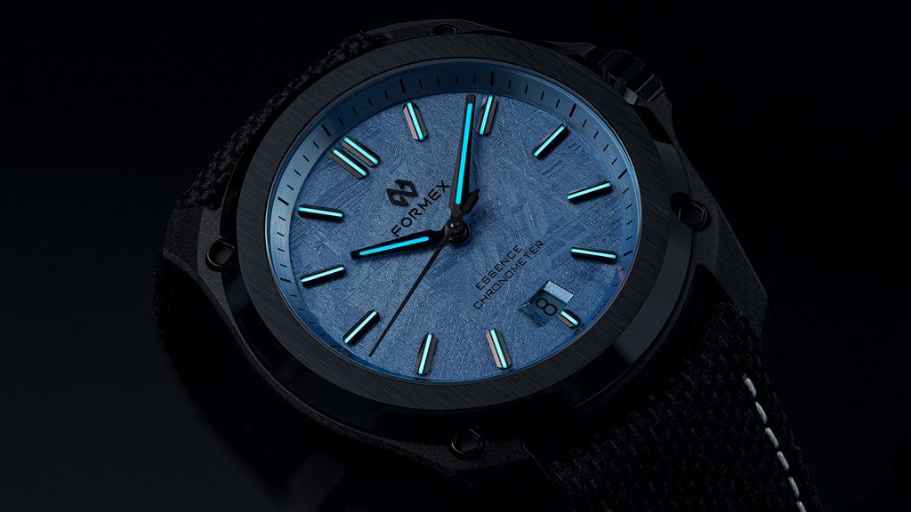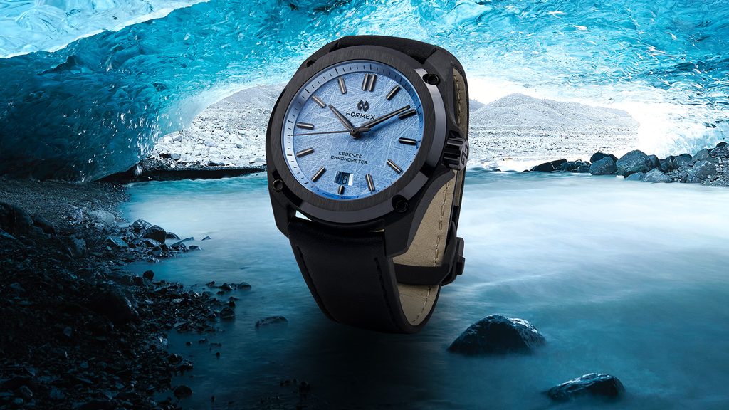 Formex Essence Leggera FortyOne Automatic Chronometer Space Glacier rozšiřují nabídku speciálních edicí, které dělá unikátními jejich číselník. V tomto případě číselník z meteoritu, který je postříbřený 98% stříbrem. Na meteorit je galvanickým pokovováním nanesena vrstva 98% stříbra, po níž následuje ruční nanášení šesti vrstev průhledného laku zapon teintée. Jedná se o jemný průhledný celulózový lak s kapkou modré barvy.