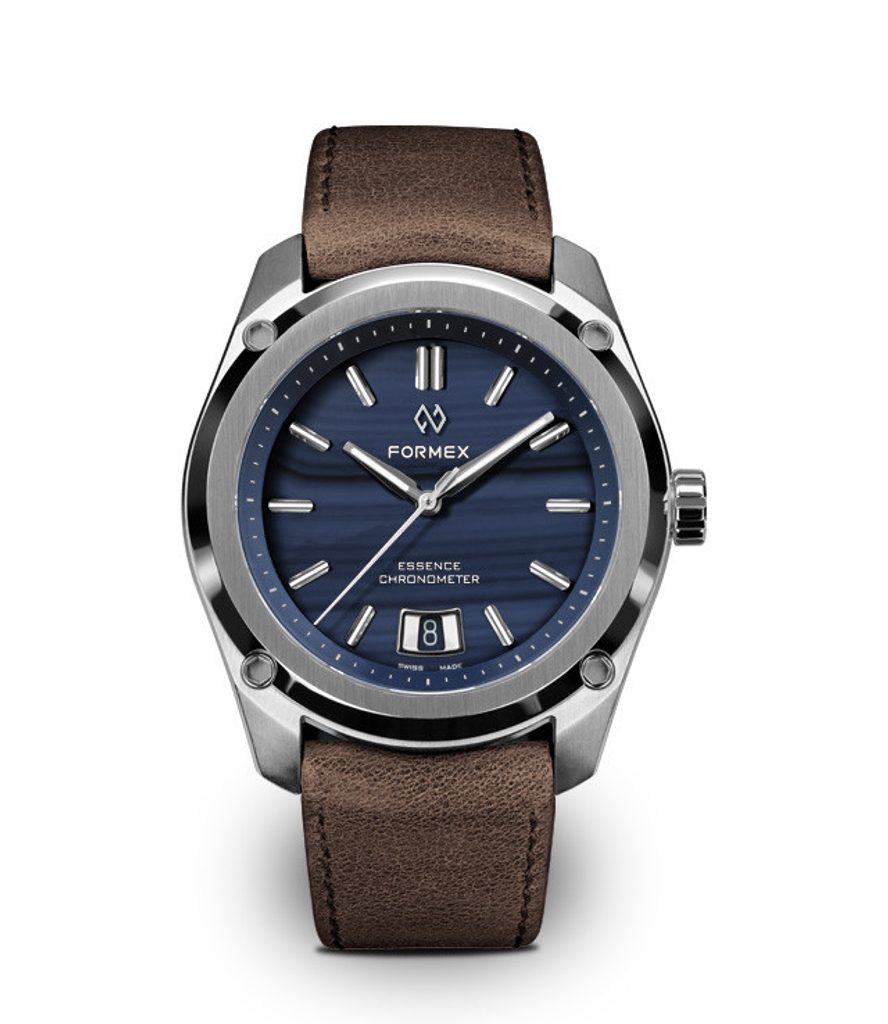 Švýcarské hodinky Formex Essence ThirtyNine Automatic Chronometer Blue Agate na první pohled zaujmou unikátním modrých achátovým číselníkem a výrazným broušeným pouzdrem s efektními leštěnými plochami. Jsou moderní podobou univerzálních hodinek vhodných pro jakoukoliv příležitost, které se vyznačují jednoduchými liniemi a skvělou přehledností. Celkovým souborem vlastností se modely Formex Essence těší u hodinkových fanoušků velké oblibě.