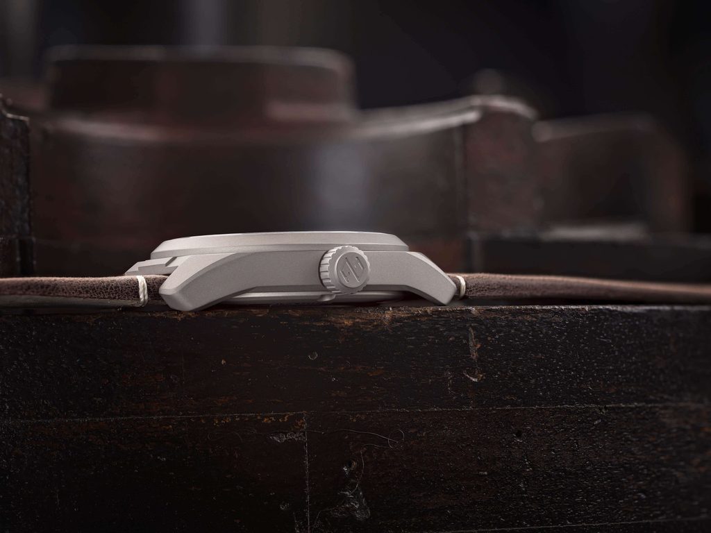 Pouzdro hodinek Formex Field Automatic Charcoal 0660.1.6523.723 je vyrobené z titanu třídy 2 a pro zvýšení odolnosti je opatřené speciálním tvrzením, zvyšujícím tvrdost povrchu ze 145 Vickersů na přibližně 900 Vickersů. To vše při zachování nízké hmotnosti, vysokého pohodlí a hypoalergenních vlastností titanu. Pouzdro doplňuje světle hnědý kožený řemínek, zakončený karbonovou překlápěcí sponou s inovativním systémem jemné mikroregulace v rozsahu 7 mm. Úpravu délky snadno provedete stiskem bočního tlačítka bez potřeby sundání hodinek z ruky. Řemínek potěší také rychloupínáním, díky němuž je jeho výměna hračka.