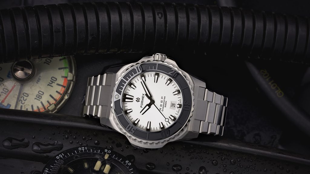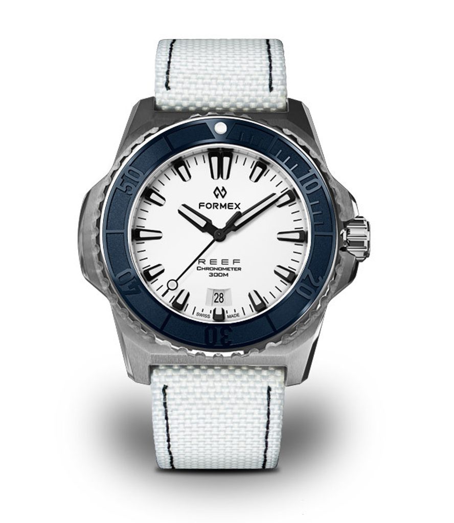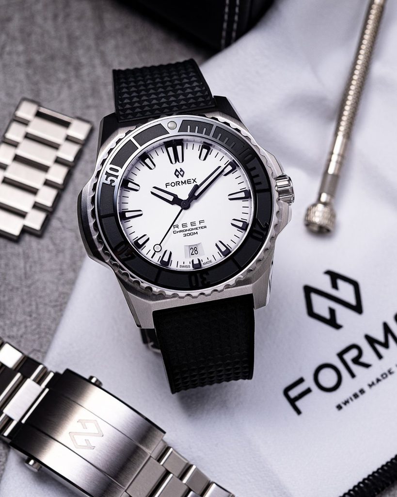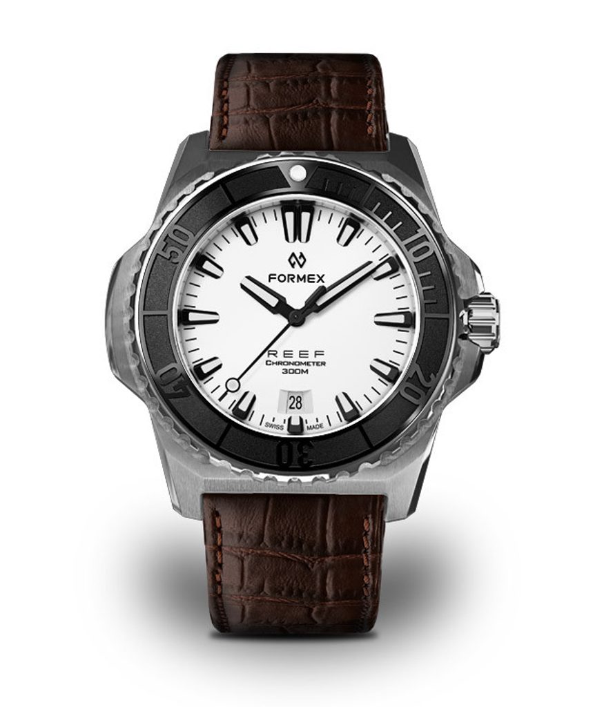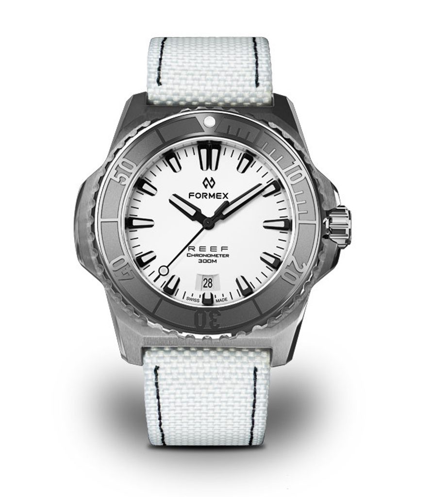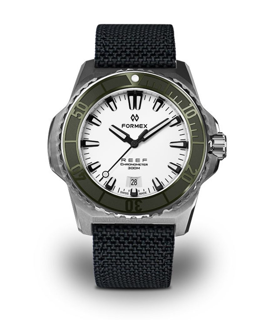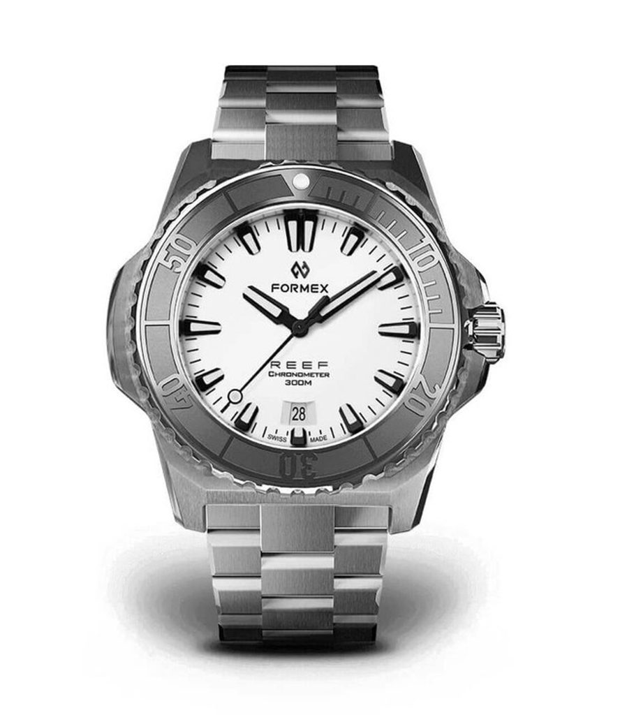 Švýcarské potápěčské hodinky Formex Reef 42 Automatic Chronometer White Dial na první pohled zaujmou výrazným jasně rozpoznatelným pouzdrem a skvěle čitelným číselníkem. Jsou moderní podobou potápěčských hodinek vhodných pro jakoukoliv příležitost, které se vyznačují jednoduchými liniemi, vysokou odolností a skvělou přehledností.