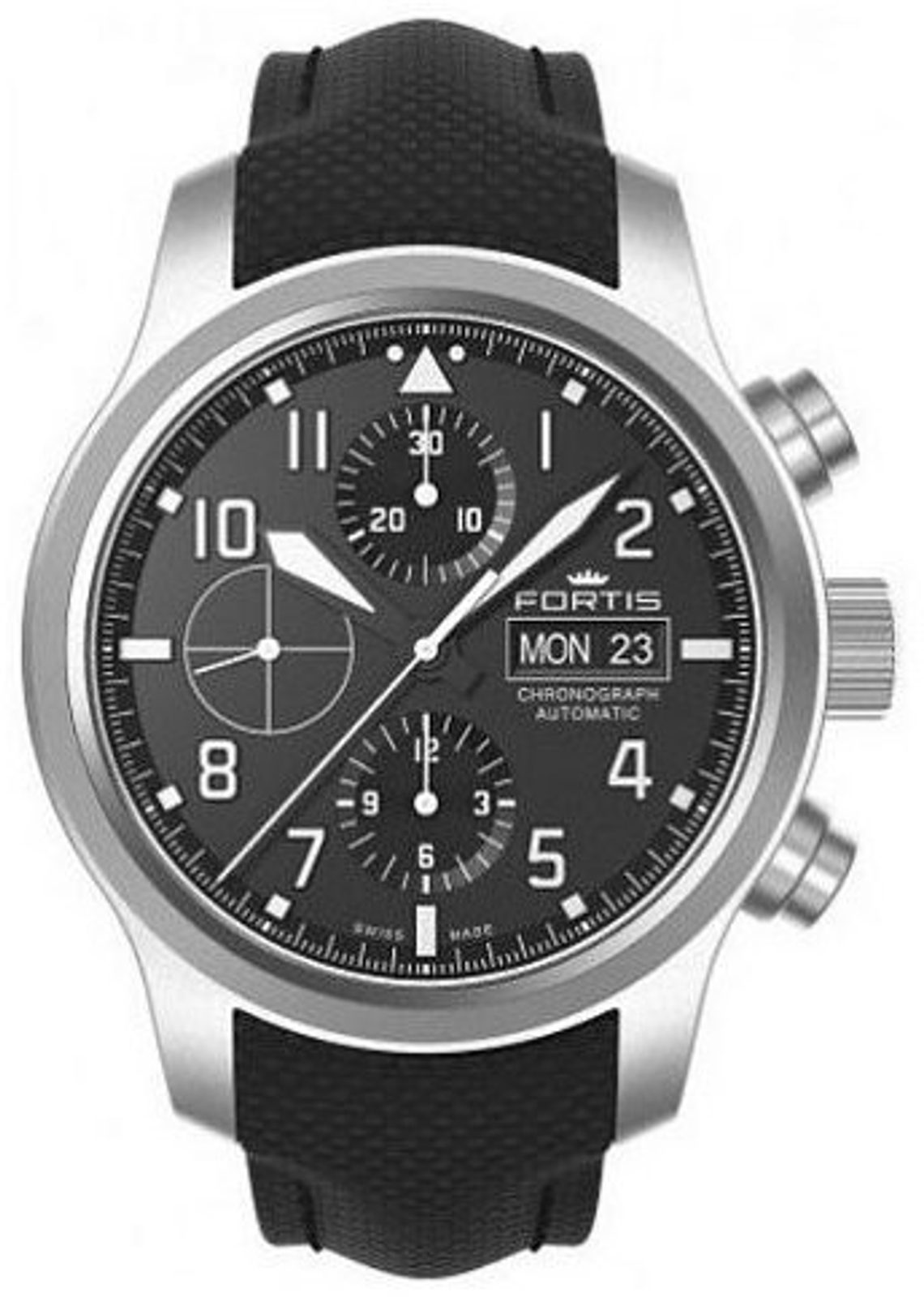 Švýcarské hodinky Fortis Aeromaster Steel Chronograph 656-10-10-LP na první pohled zaujmou typickým pilotním designem s jasným rukopisem značky Fortis. Zdobí je dokonalá přehlednost, robustnost a odolnost. Tyto hodinky skvěle poslouží nejen v kokpitu letadla, ale i při každodenním nošení.