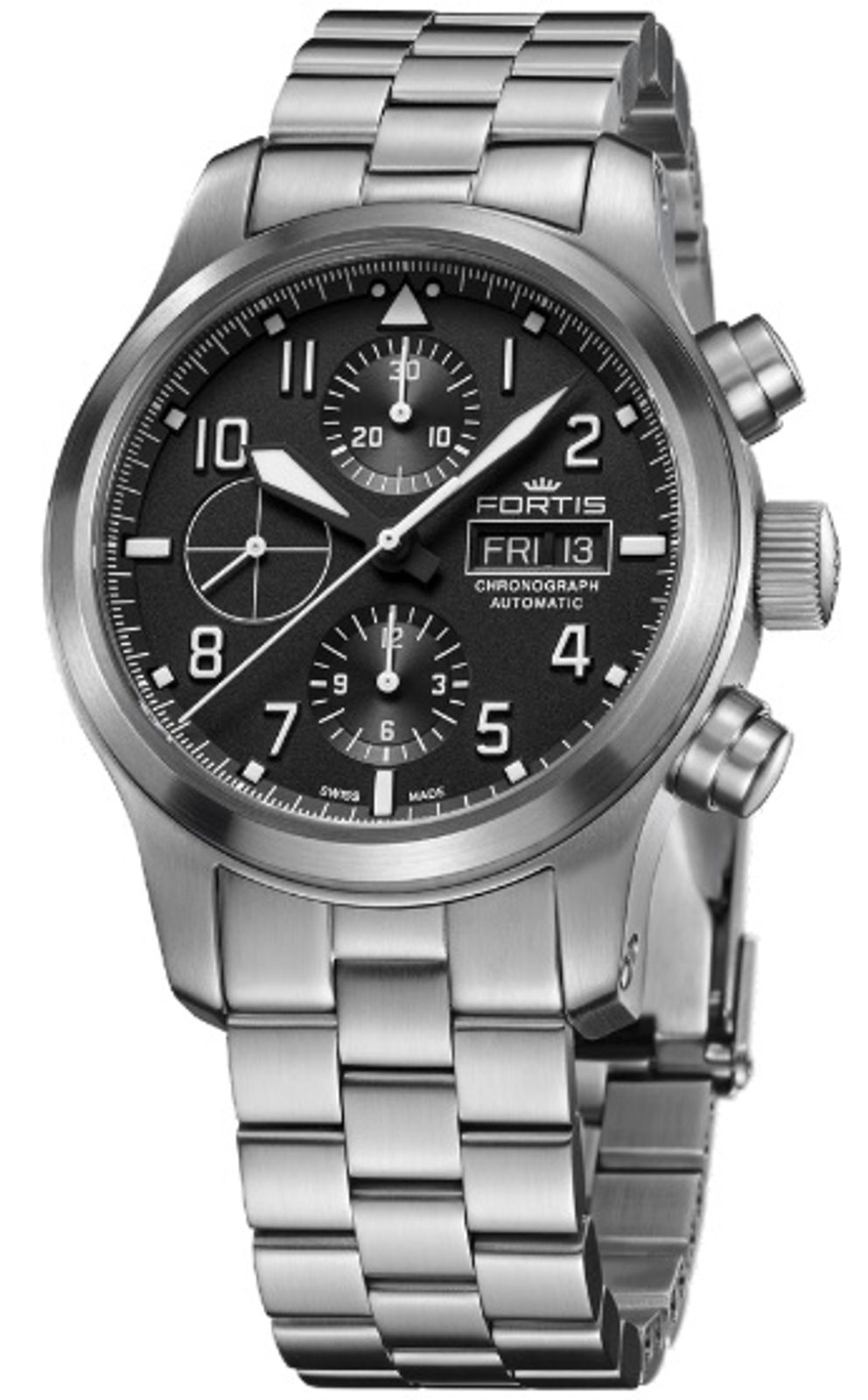 Švýcarské hodinky Fortis Aeromaster Steel Chronograph F4040000 na první pohled zaujmou typickým pilotním designem s jasným rukopisem značky Fortis. Zdobí je dokonalá přehlednost, robustnost a odolnost. Tyto hodinky skvěle poslouží nejen v kokpitu letadla, ale i při každodenním nošení.