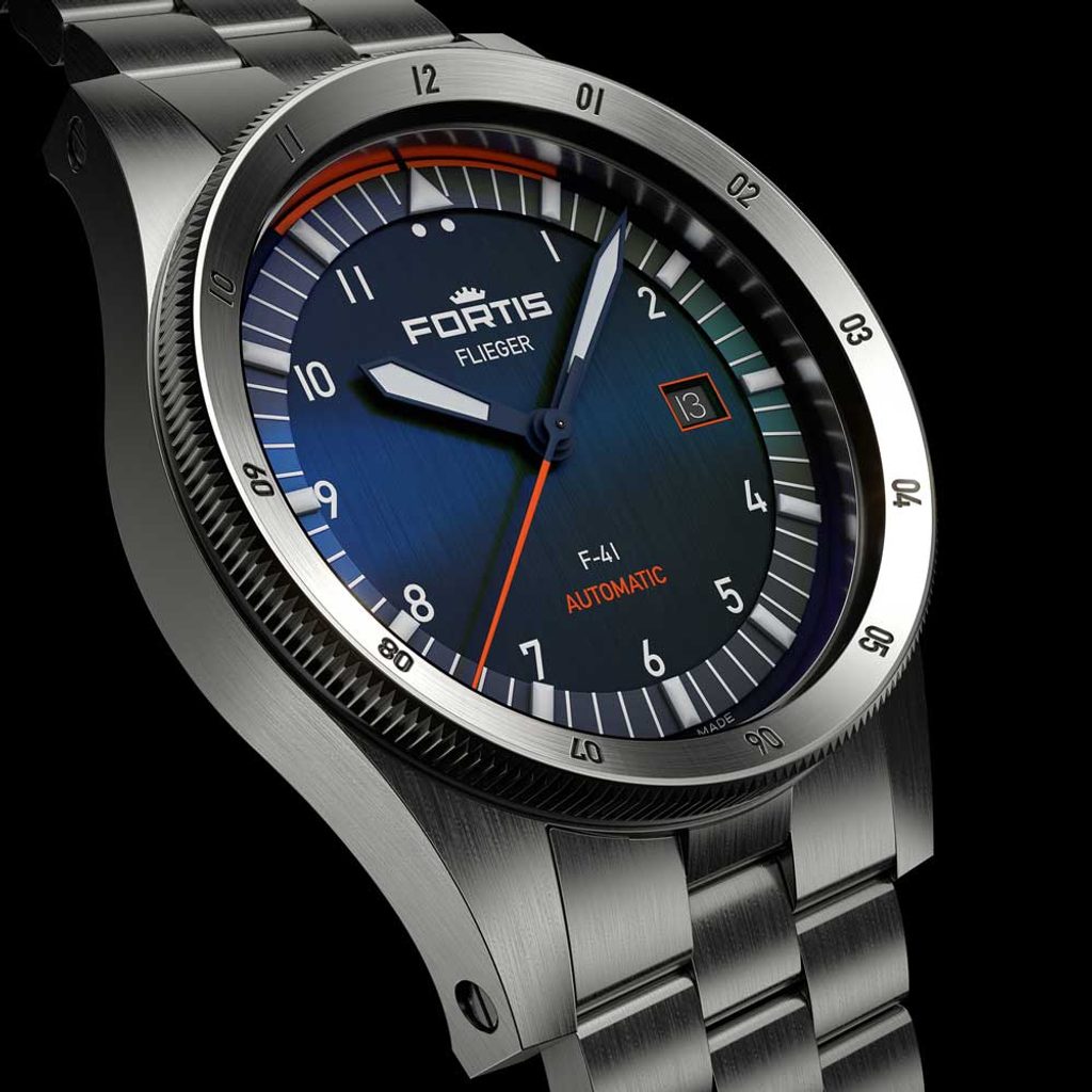 Švýcarské hodinky Fortis Flieger F-41 Midnight Blue F4220012 na první pohled zaujmou typickým pilotním designem s jasným rukopisem značky Fortis. Zdobí je dokonalá přehlednost, robustnost a odolnost. Tyto hodinky skvěle poslouží nejen v kokpitu letadla, ale i při každodenním nošení.