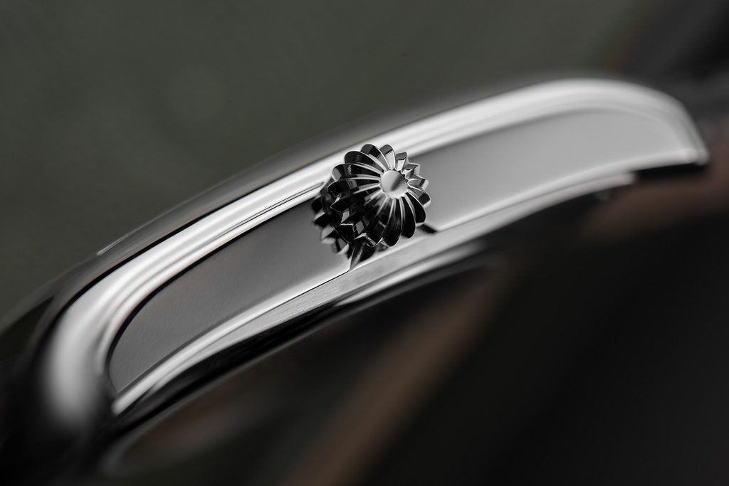 Elegantní a zároveň přehledný číselník je chráněn safírovým sklíčkem, které je maximálně odolné vůči poškrábání. Voděodolnost tohoto modelu je 30m (3 ATM), zvládne tedy základní kontakt s vodou, jako je mytí rukou, či déšť.