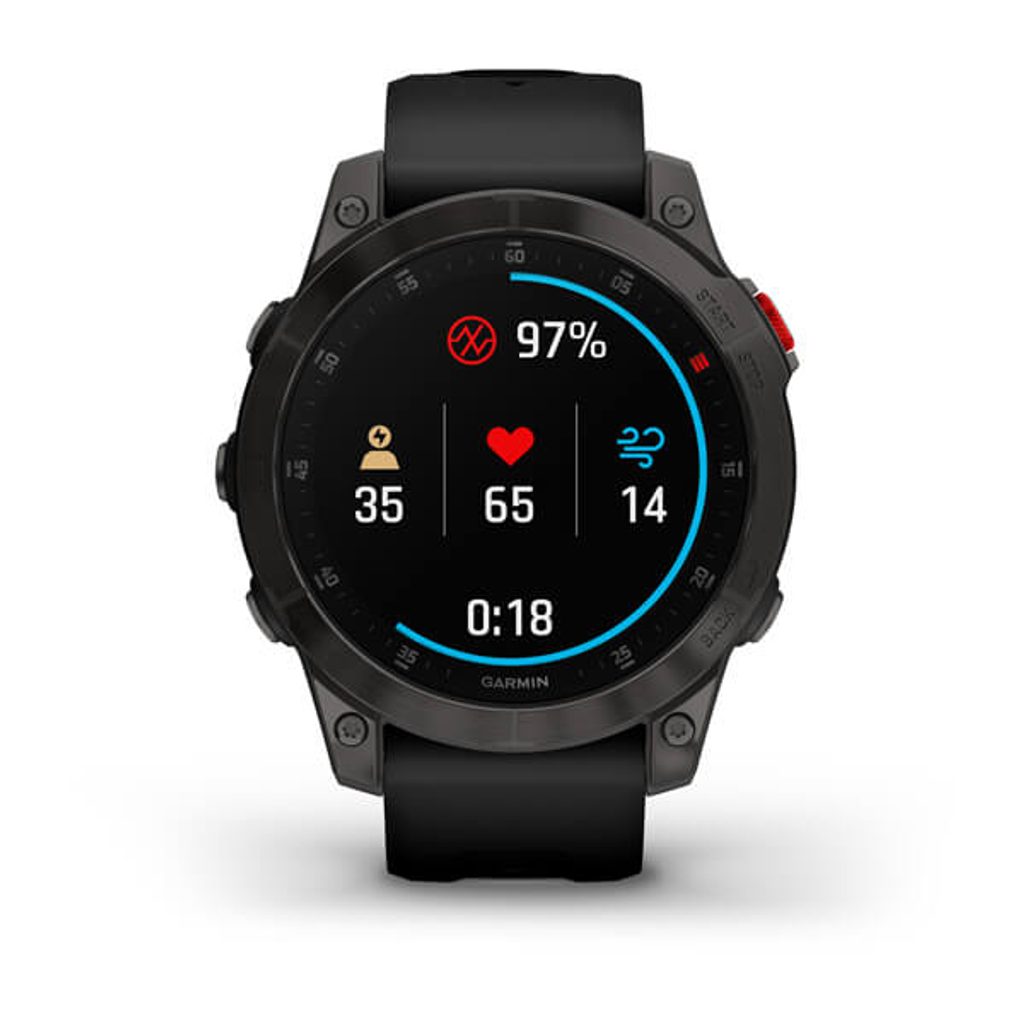 Pouzdro chytrých GPS hodinek Garmin epix™ Standart edition Sapphire, Titan Black/ Black Silicone Band - 010-02582-11 je vyrobené z tvrzeného polymeru a oceli. Uvnitř tohoto pouzdra pracuje modul s množstvím funkcí, využitelných hlavně při sportu a outdooru. Průměr displeje je 1,3“. Hodinky mají v paměti předinstalované mapy s možností automatické navigace, jsou vybavené WiFi konektivitou a nabízejí přehrávání hudby z vlastní paměti (32GB), do které je možné nahrát jak vlastní hudební soubory, tak i seznamy skladeb ze streamovacích hudebních služeb, jako je Spotify nebo Deezer.