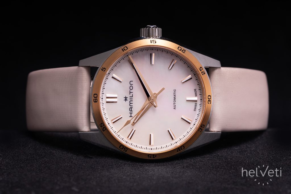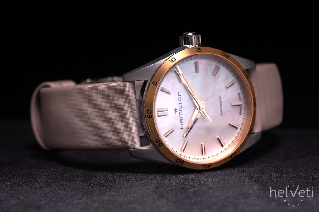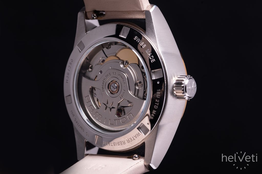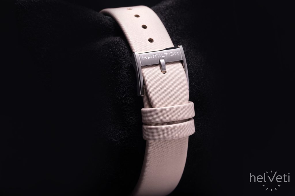 Pouzdro hodinek Hamilton H32215170 je vyrobeno z ušlechtilé oceli a na ruce hodinky drží díky kvalitně zpracovanému saténovému řemínku s trnovou sponou. Uvnitř pouzdra spolehlivě pracuje švýcarský mechanický strojek H-10 (postavený na ETA C07.611 postavený na ETA 2824-2) s automatickým nátahem. Ten pracuje na frekvenci 21600 polokmitů za hodinu a disponuje 25 kameny. Činnost strojku lze pozorovat průhledným dýnkem (safírové sklíčko).