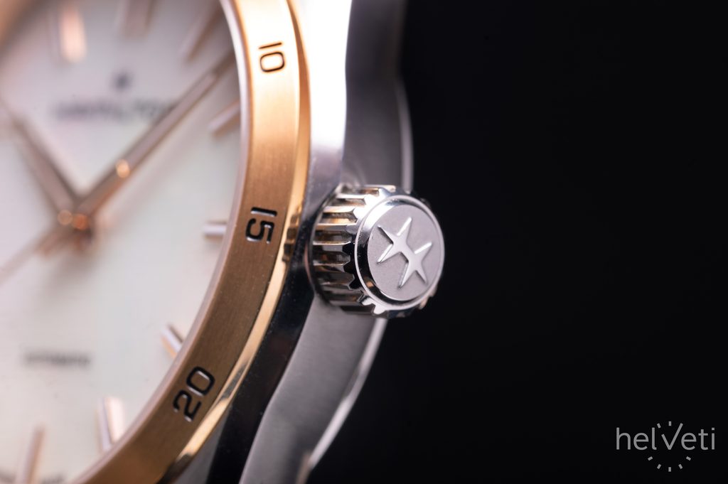 Průměr pouzdra 34 mm činí hodinky nositelnými pro většinu dámských zápěstí. Vodotěsnost hodinek je 100 m (10 ATM), zvládne tedy i větší kontakt s vodou, jako je plavání. Voděodolnost je podpořena šroubovací korunkou.