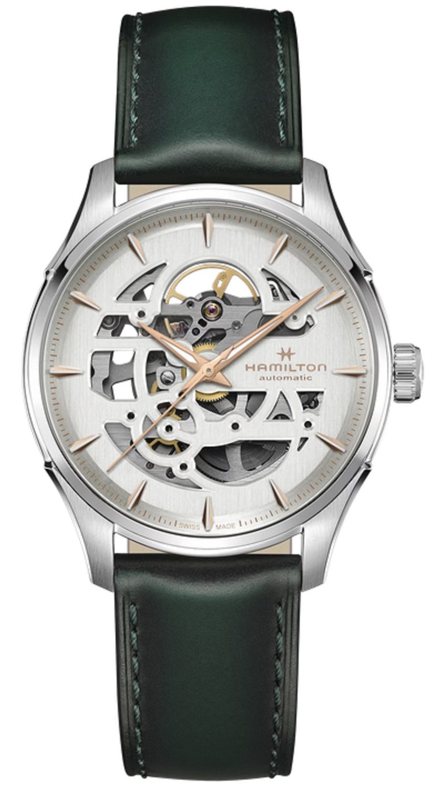 Pánské hodinky Hamilton Jazzmaster Skeleton Auto H42535810 spadají do řady Jazzmaster a díky svému elegantnímu designu jsou vhodné pro speciální příležitost do společnosti, ale klidně i pro každodenní nošení. Skeleton číselník nám umožňuje sledovat precizní práci strojku.