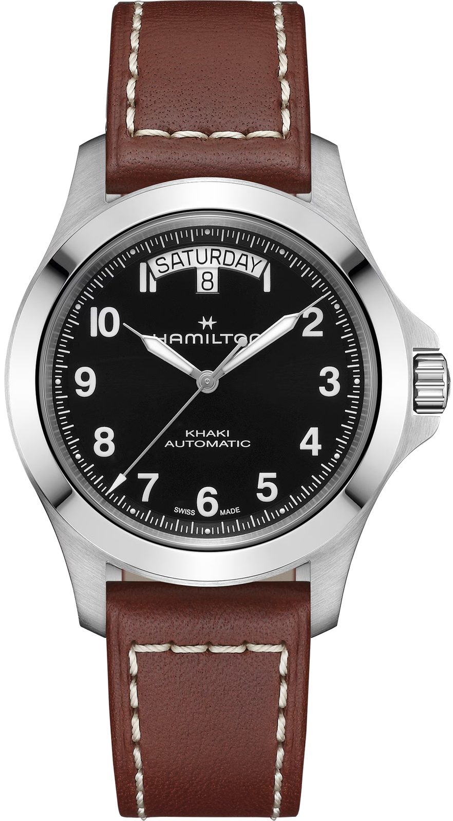 Lezení po horách, túry lesem nebo zdolávání městské džungle: Hamilton Khaki Field King Auto H64475531 se přizpůsobí vašim potřebám v terénu. S exkluzivním automatickým kalibrem H-40 nabízejícím až 80 hodin rezervy chodu vás nezklame. Hamilton H64475531 jsou dokonalými všestrannými hodinkami pro moderní hrdiny.