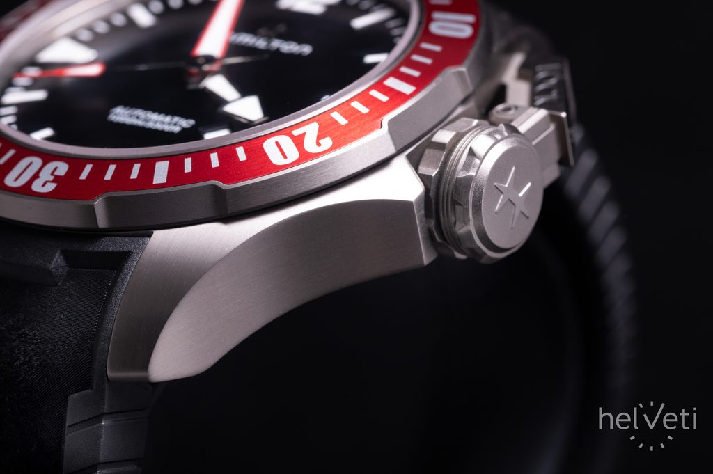 Hodinky Hamilton Khaki Navy Khaki Navy Frogman Titanium Auto H77805335 disponují větším pouzdrem a to 46 mm, zvýšenou voděodolností do 100 ATM (1000 m) a extra čitelným ciferníkem. Jsou to vysoce výkonné hodinky připraveny na všechna vaše dobrodružství na vodě, ve vodě i pod vodou.