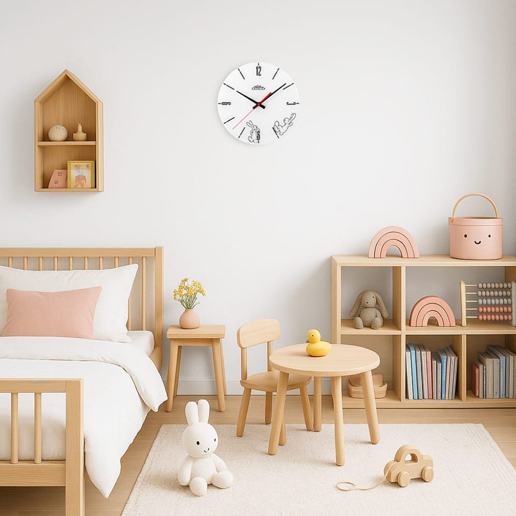 Nástěnné hodiny s postavičkami oblíbených večerníčkových hrdinů, králíků Boba a Bobka. Veselé motivy ve dvou provedeních probudí úsměv na tváři a slyšíte? Jakoby z dálky? „Vstávat a cvičit!“