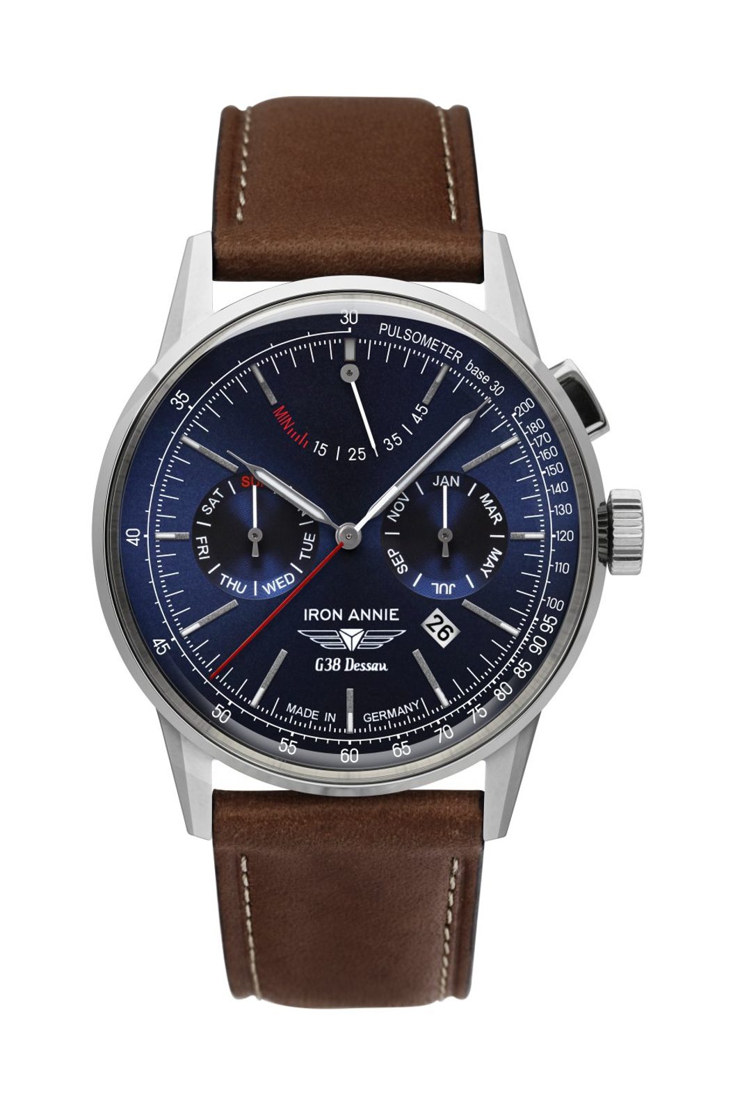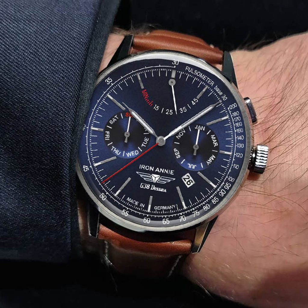 Hodinky Iron Annie 5362-3 z modelové řady G38 Dessau nabízí přehledně zpracovaný sportovně elegantní číselník s kalendářními údaji. Ocení jej především milovníci klasických hodinek, model je ideální volbou pro každodenní nošení.