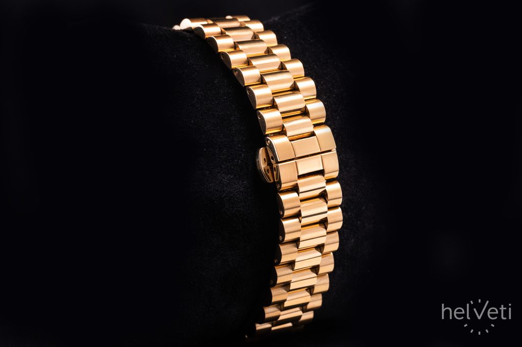 AKTUALIZACE: U tohoto modelu má zlatý ocelový PVD náramek výrobní vadu a nejde snadno zkrátit (některé články neuvolníte). Ihned jsme objednali nových 50 ks zlatých ocelovým náramků a buď vám náramek dopošleme včetně zkracovače (vyměnit a zkrátit jej pak půjde snadno i v domácích podmínkách) nebo se stačí s hodinkami v lednu zastavit (nebo nám je na naše náklady poslat) a my vám náramek zdarma vyměníme a zkrátíme.