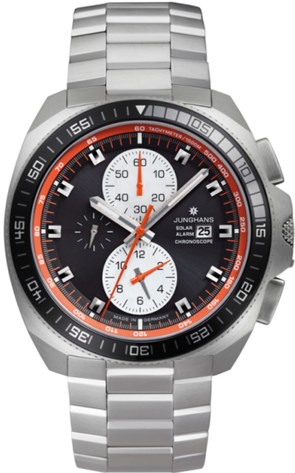Německé hodinky Junghans 1972 Chronoscope Solar 014/4202.44 z řady Performance oživují styl 70. let ve spojení s moderní technologií. V hodinkách můžeme najít odkaz na rok 1972, kdy byl Junghans oficiálním časoměřičem letních Olympijských her v Mnichově.