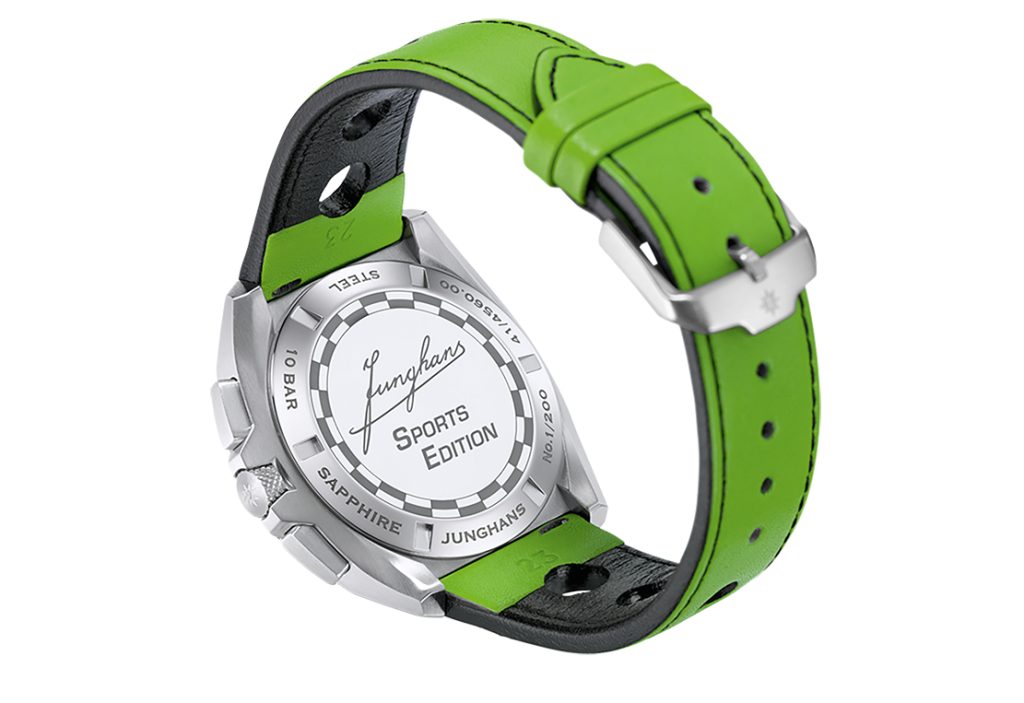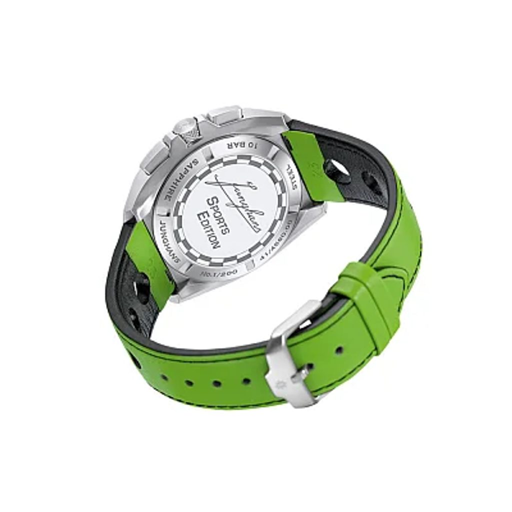 Tato limitovaná edice, čítající pouhých 200 kusů, odkazuje na bohatou historii značky Junghans coby časoměřiče sportovních výkonů. Už před ca 100 lety vyráběl Junghans stopky pro měření času ve sportu, následně dokonce využíval samostatné oddělení pro vývoj technologie pro sportovní měření času. Junghans měřil čas na automobilových závodech, mistrovství světa v lyžování, veslování, či atletických závodech. Vrcholem byla účast značky Junghans na oylmpiádě 1972 v Mnichově. Tam došlo k revoluční změně v měření času, kdy byl sportovcům čas měřen díky použití quartzového strojku poprvé v historii s přesností na setinu sekundy. Tento model nejvíce připomíná měření času na automobilových závodech, čemuž odpovídá design číselníku i řemínku.