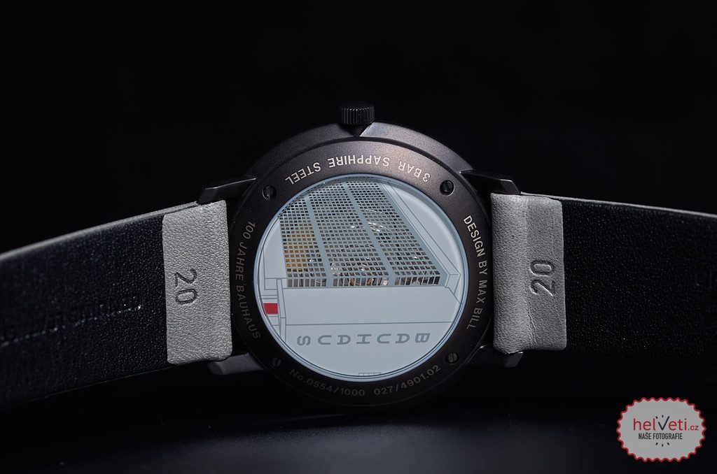 Hodinky Junghans Max Bill Automatic 100 Jahre Bauhaus 027/4901.02 jsou osazeny automaticky poháněným strojkem J800.1, jenž vychází ze švýcarské varianty ETA 2824 s rezervou chodu až 38 hodin. Lze jej pozorovat díky neobvykle řešenému průhledu v dýnku hodinek. Ciferník je inspirován jednoduchostí uměleckého stylu Bauhaus. Design hodinek byl pro Junghans navrhnut švýcarským architektem, sochařem a designérem Maxem Billem v 60. letech minulého století a od té doby zůstává prakticky nezměněn. Chráněn je safírovým sklíčkem, což zaručuje maximální ochranu vůči poškrábání, oboustranná antireflexní vrstva pak poskytuje skvělou čistelnost i na ostrém světle. Ukazatel data je umístěn na pozici 3. hodiny a jeho pole je vyvedeno v červené barvě, která odkazuje na dveře akademie Bauhaus ve Výmaru.