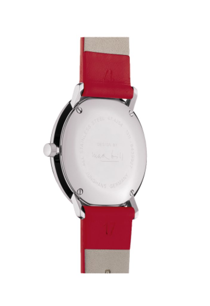 Hodinky Junghans Max Bill Damen 047/4541.00 jsou osazeny bateriově poháněným strojkem J643.29, jenž vychází ze švýcarské varianty ETA 955.412. Ciferník je inspirován jednoduchostí uměleckého stylu Bauhaus. Design hodinek byl pro Junghans navrhnut švýcarským architektem, sochařem a designérem Maxem Billem v 60. letech minulého století a od té doby zůstává prakticky nezměněn. Chráněn je konvexním plastovým sklíčkem se speciální ochranou Sicralan. Ta poskytuje zvýšenou ochranu skla proti poškrábání, UV záření a zároveň zajišťuje jeho větší lesk. Ukazatel data je umístěn u pozice 3. hodiny. Pouzdro s průměrem 32,7 mm je skvěle uzpůsobeno pro dámské zápěstí. Voděodolnost mají naprosto minimální (déšť), a proto doporučujeme vyhnout se jakémukoliv většímu kontaktu s vodou.