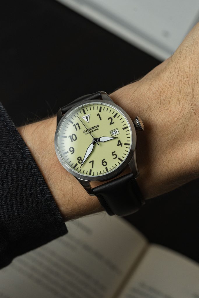 Německá značka Junkers je přímo spjatá s fascinující historií letectví a značkou legendárních letadel Junkers. A to nejen svým názvem, ale především převzetím rodinných tradic a filosofie původní letecké značky. Nejzajímavější modely hodinek Junkers vycházejí z původních vzorů ciferníků určených pro piloty a navigátory – Baumuster A a Baumuster B. Další modelové řady, které vám představíme, pojí tematika legendárních letadel a čistých linií bauhausovského designu. Nechybí samozřejmě velmi precizní provedení, kvalitní švýcarské a japonské strojky a také dámské modely.