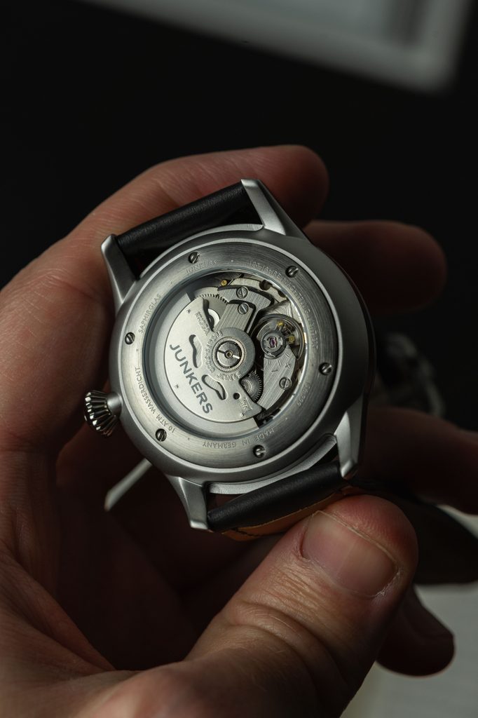 Hodinky Junkers 100 Years Night Flight 958.03.13 mají pouzdro vyrobené z ušlechtilé oceli v němž pracuje japonský mechanický strojek Seiko NH35 s 24 kameny. Ten pracuje na frekvenci 21600 polokmitů za hodinu a disponuje ukazatelem data na tradiční pozici třetí hodiny. Jeho činnost můžeme pozorovat díky průhlednému dýnku. Celý číselník hodinek je pokryt luminiscenčním nátěrem Tritec Super-LumiNova®. Hodinky jsou dodávány se stylovým koženým řemínkem.
