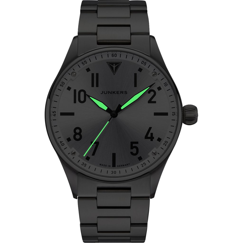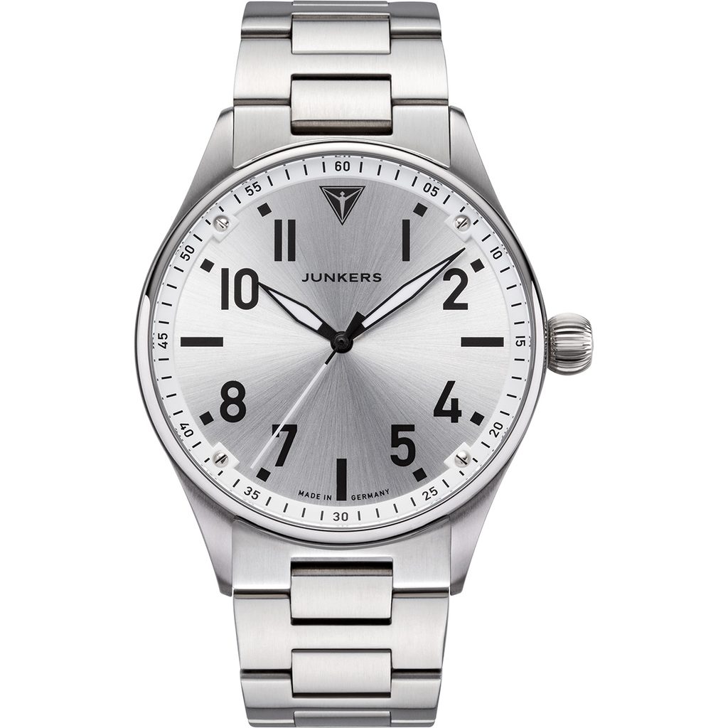 Hodinky Junkers 9.02.01.03.M mají pouzdro vyrobené z ušlechtilé oceli, v němž pracuje japonský bateriový strojek Miyota 2035. Na číselníku je patrný pilotní styl, který hodinkám propůjčuje skvělou čitelnost. Hodinky jsou dodávány s ocelovým náramkem.