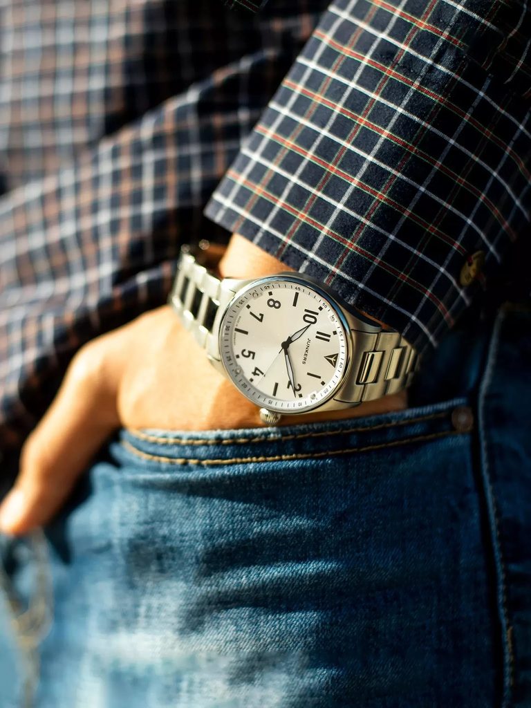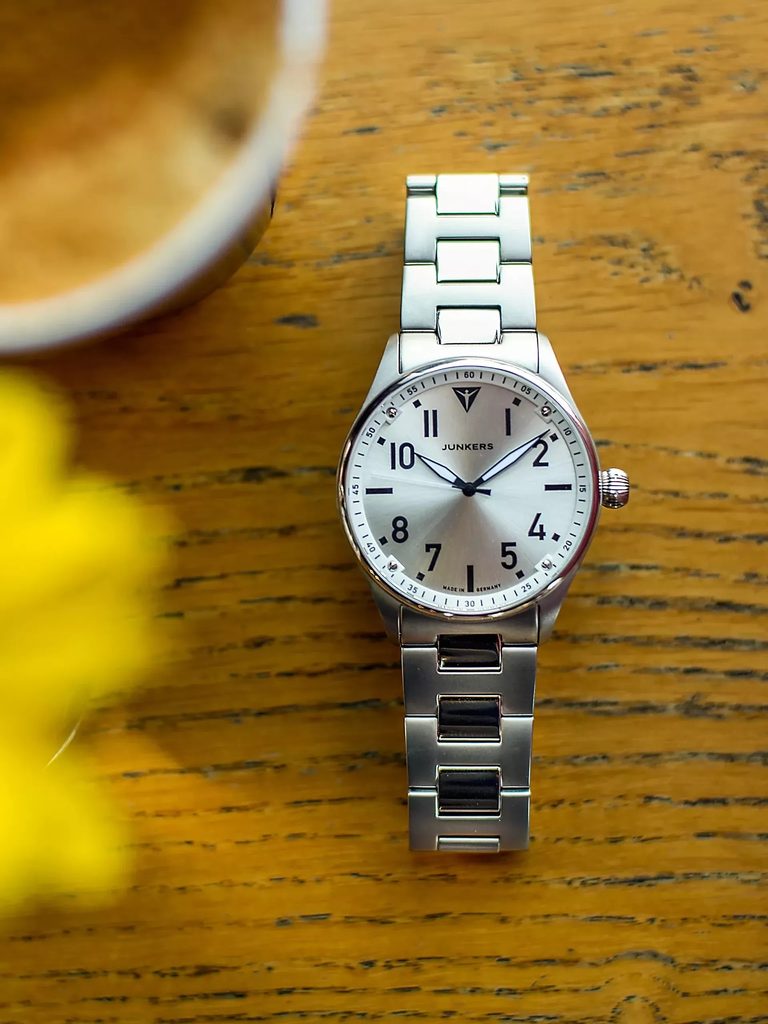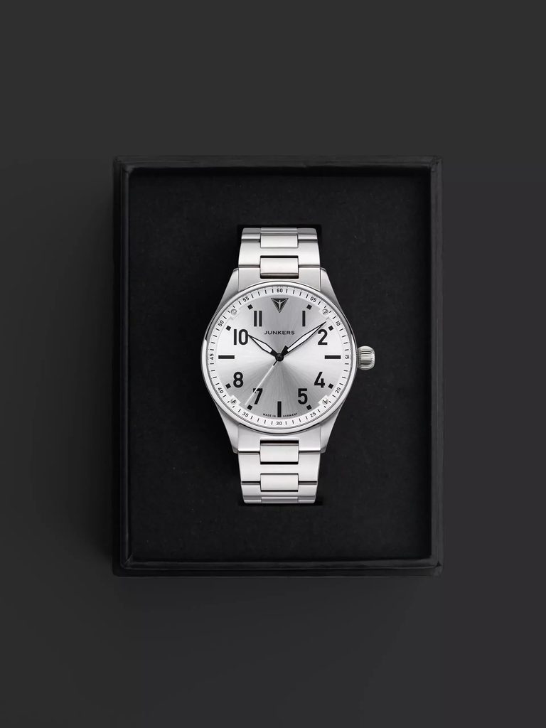 Německá značka Junkers je přímo spjatá s fascinující historií letectví a značkou legendárních letadel Junkers. A to nejen svým názvem, ale především převzetím rodinných tradic a filosofie původní letecké značky. Nejzajímavější modely hodinek Junkers vycházejí z původních vzorů ciferníků určených pro piloty a navigátory – Baumuster A a Baumuster B. Další modelové řady, které vám představíme, pojí tematika legendárních letadel a čistých linií bauhausovského designu. Nechybí samozřejmě velmi precizní provedení, kvalitní švýcarské a japonské strojky a také dámské modely.