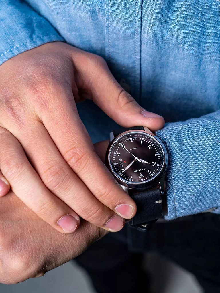 Německá značka Junkers je přímo spjatá s fascinující historií letectví a značkou legendárních letadel Junkers. A to nejen svým názvem, ale především převzetím rodinných tradic a filosofie původní letecké značky. Nejzajímavější modely hodinek Junkers vycházejí z původních vzorů ciferníků určených pro piloty a navigátory – Baumuster A a Baumuster B. Další modelové řady, které vám představíme, pojí tematika legendárních letadel a čistých linií bauhausovského designu. Nechybí samozřejmě velmi precizní provedení, kvalitní švýcarské a japonské strojky a také dámské modely.