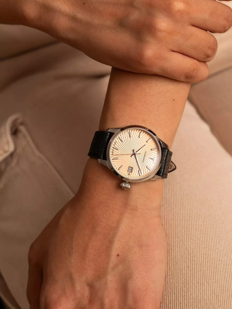 Díky průměru pouzdra 36 mm padnou hodinky Junkers Victoria 970.02.18 na většinu dámských zápěstí.