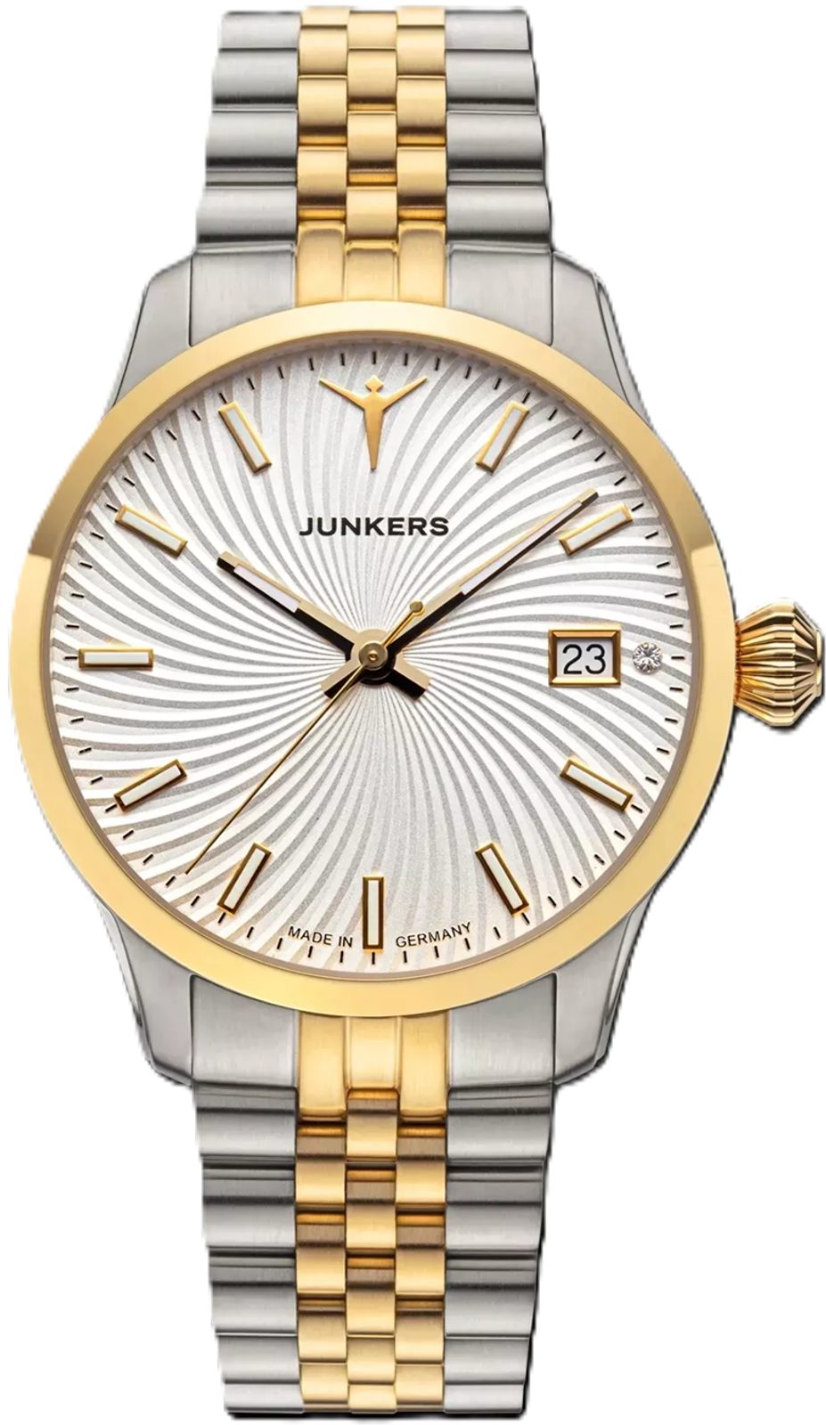Německá značka Junkers je přímo spjatá s fascinující historií letectví a značkou legendárních letadel Junkers. A to nejen svým názvem, ale především převzetím rodinných tradic a filosofie původní letecké značky. Nejzajímavější modely hodinek Junkers vycházejí z původních vzorů ciferníků určených pro piloty a navigátory – Baumuster A a Baumuster B. Další modelové řady, které vám představíme, pojí tematika legendárních letadel a čistých linií bauhausovského designu. Nechybí samozřejmě velmi precizní provedení, kvalitní švýcarské a japonské strojky a také dámské modely.