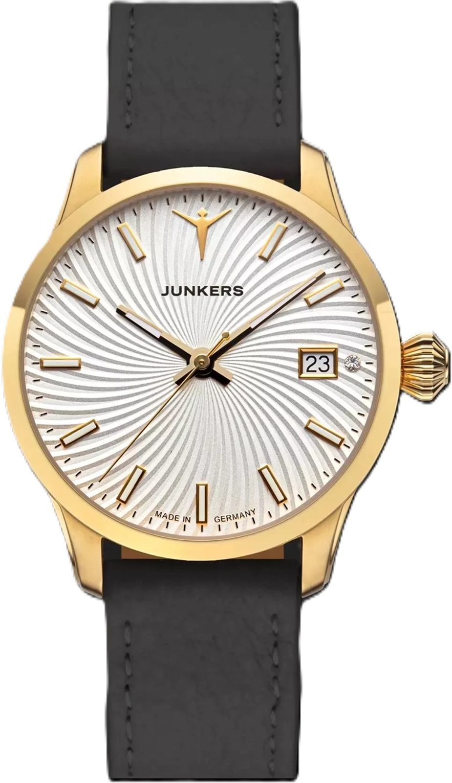 Německá značka Junkers je přímo spjatá s fascinující historií letectví a značkou legendárních letadel Junkers. A to nejen svým názvem, ale především převzetím rodinných tradic a filosofie původní letecké značky. Nejzajímavější modely hodinek Junkers vycházejí z původních vzorů ciferníků určených pro piloty a navigátory – Baumuster A a Baumuster B. Další modelové řady, které vám představíme, pojí tematika legendárních letadel a čistých linií bauhausovského designu. Nechybí samozřejmě velmi precizní provedení, kvalitní švýcarské a japonské strojky a také dámské modely.