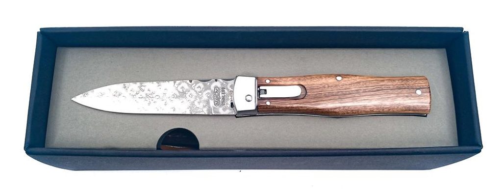 Predator je automatický vyhazovací nůž pyšnící se originálním designem a luxusními materiály. Čepel nože je vyrobena z damaškové nerezové oceli PMC 27 o tvrdosti 57-60 HRc, která je nejvíce ceněným materiálem na výrobu čepelí. Pozornost upoutá také zdobené hřbetní pero a elegantní střenka z exotického dřeva Palisader, jenž díky svému tvaru zaručuje pevný a bezpečný úchop nože. Luxusní design nože jde ruku v ruce s jeho houževnatostí a vysokou odolností.