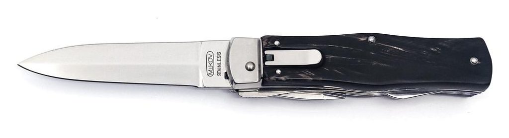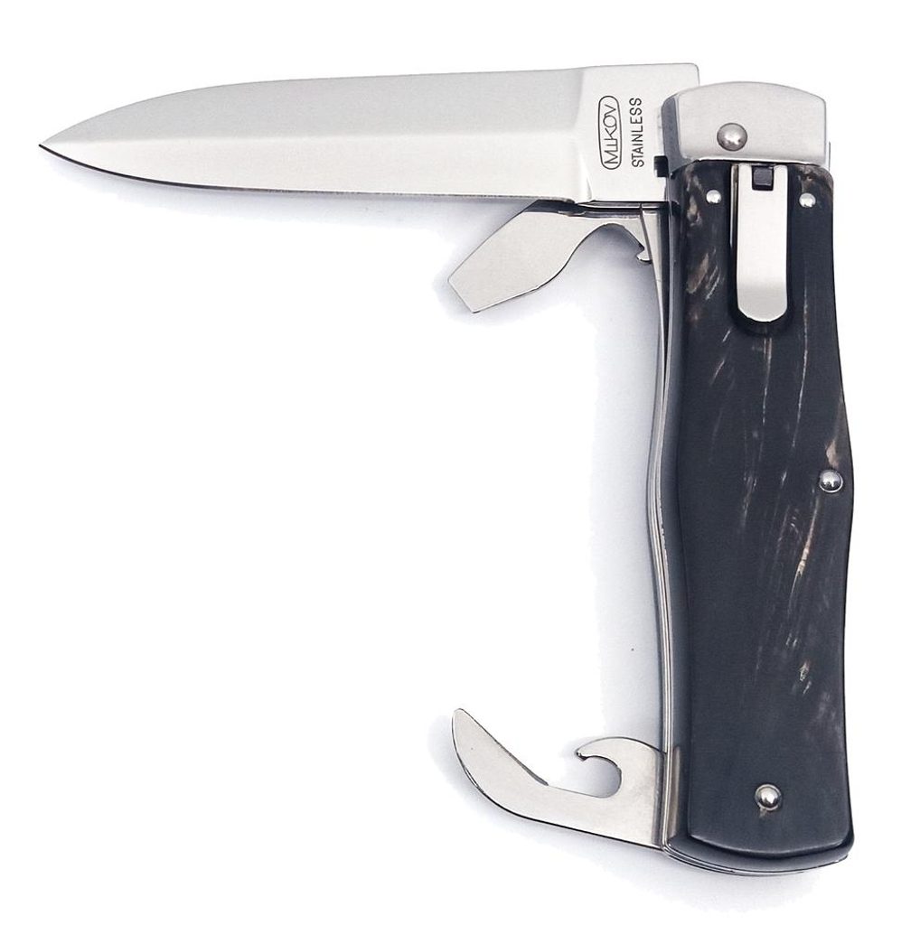 Predator Klasik je automatický vyhazovací nůž pyšnící se originálním designem a kvalitními materiály. Čepel nože je vyrobena z nerezové oceli 420 o tvrdosti 53-55 HRc, pro kterou je charakteristická vysoká odolnost a spolehlivost. Pozornost upoutá také ergonomicky tvarovaná střenka z buvolího rohu. Součástí nože je čepel, otvírák konzerv a otvírák lahví, který plní také funkci plochého šroubováku.