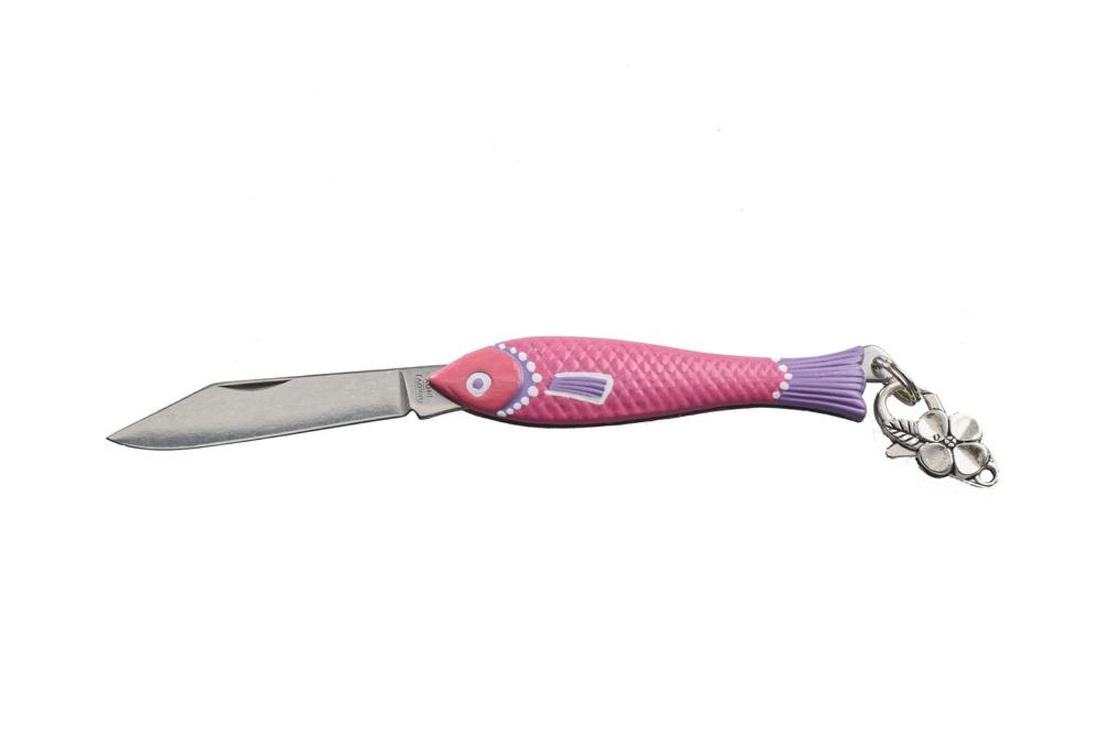 Pink je celoplošně potištěný, legendární kapesní nůž Rybička. Patří mezi dekorativní obrázkové nože, které jsou potištěné speciální UV LED technologií. Hodí se proto jako dárek k nejrůznějším příležitostem. Zatímco čepel nože je vyrobena z nerezové oceli 420 o tvrdosti 52-55 HRc, střenka je ze zinkové slitiny. Nůž je navíc opatřen dekorativní karabinkou.