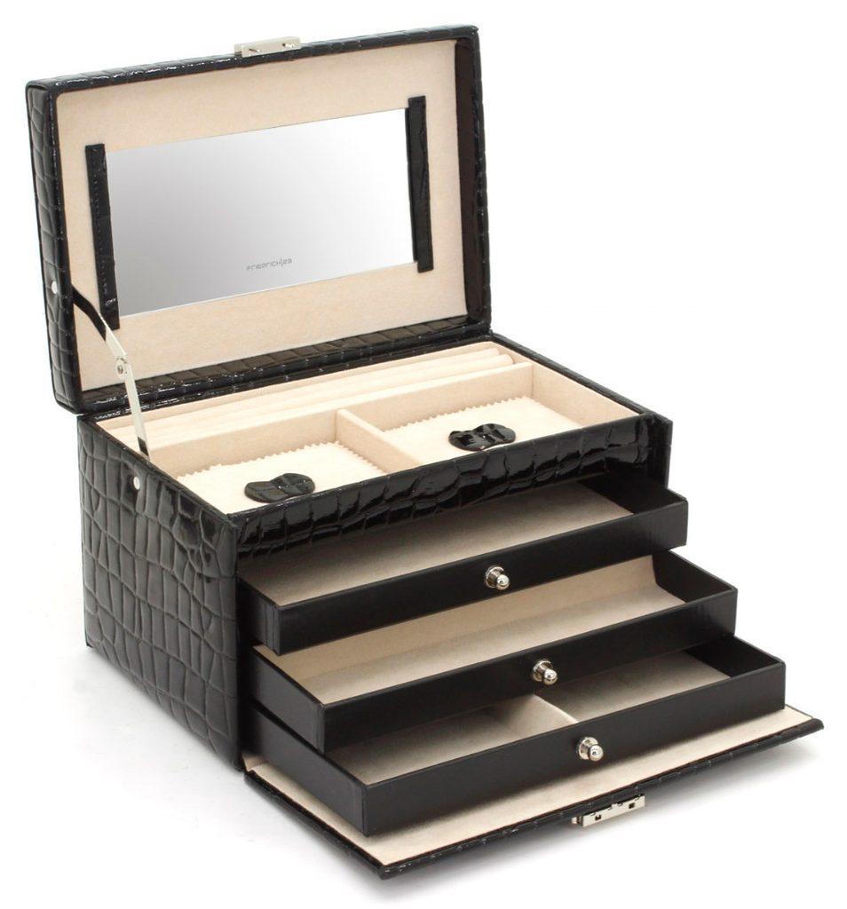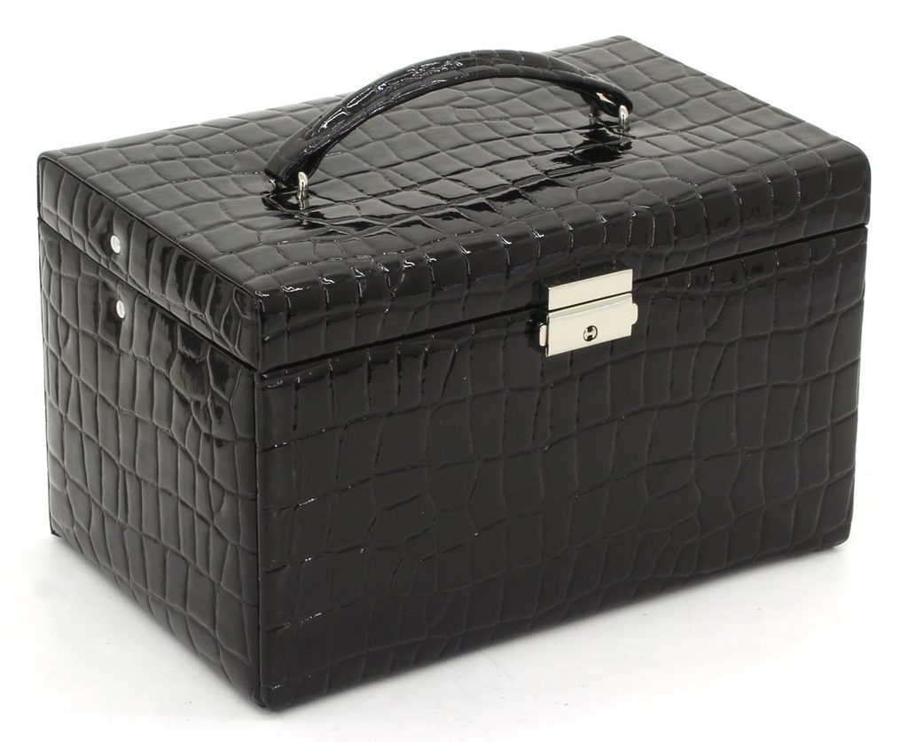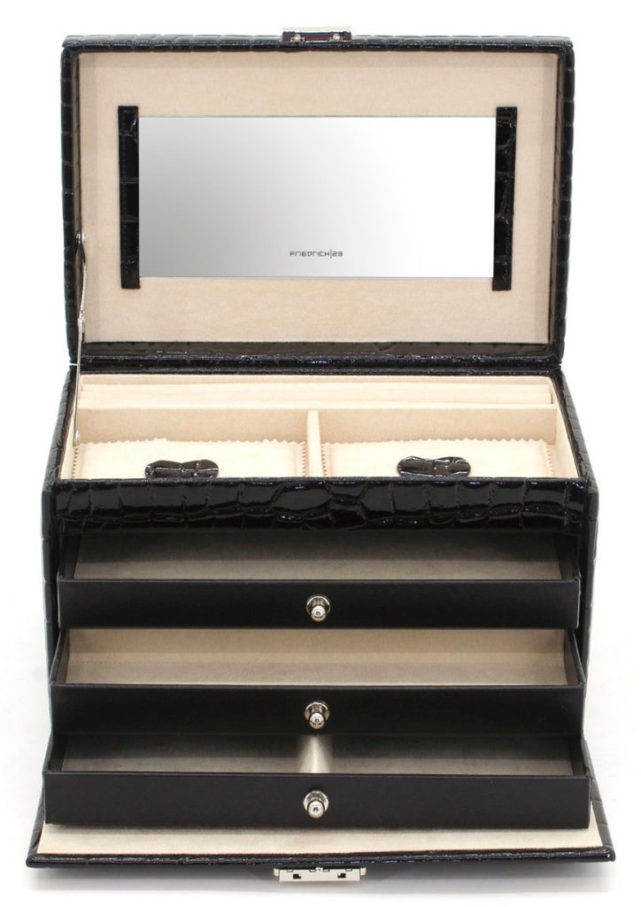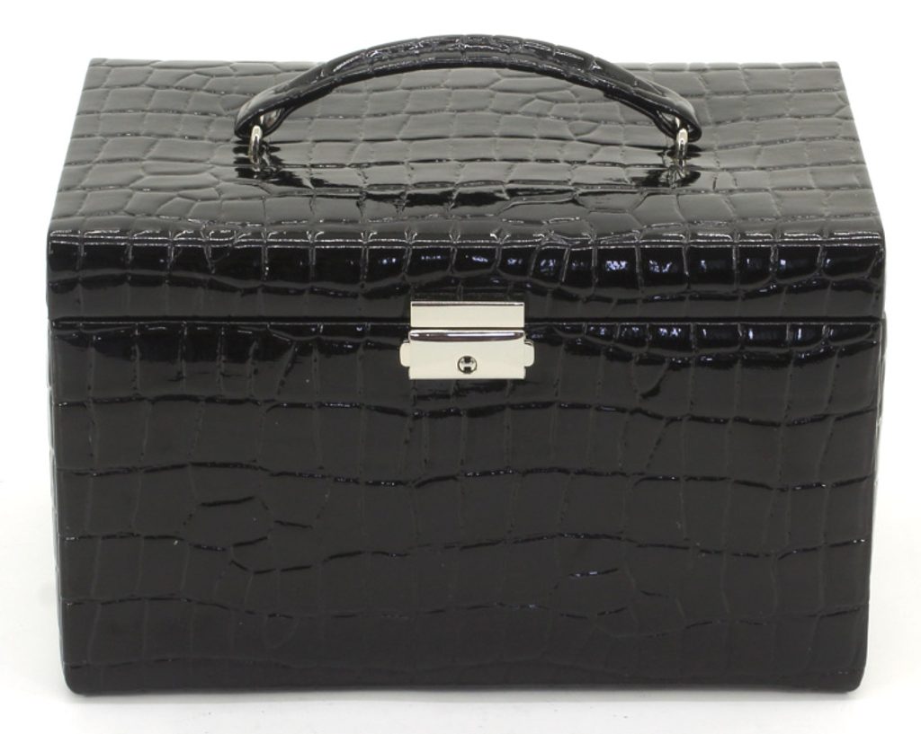 Šperkovnice Friedrich Lederwaren Jolie 2.0 23254-20 černé barvy je vyrobena ze syntetické kůže se vzorem kaiman. Vnitřek je vyroben z veluru béžové barvy.