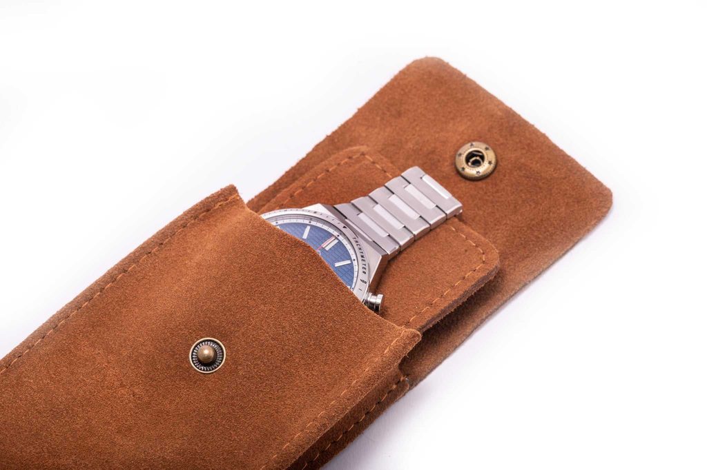 Pouzdro pro 1 kus hodinek je vyrobeno z vysoce kvalitní semišové kůže ve světle hnědém odstínu. Pouzdro je ztělesněním minimalismu a jemnosti. Je navrženo pro ty, kteří hledají lehké, skladné a funkční řešení pro ochranu svých hodinek – ať už v kapse saka, v tašce nebo při ukládání do domácího trezoru.