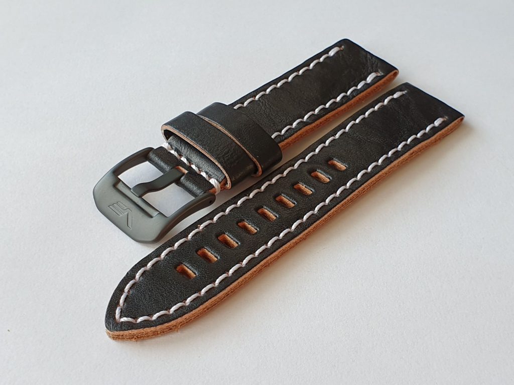 Originální kožený řemínek Vostok Europe je určený pro modely NH35A/320C257 a 6S11/320J362 z řady Almaz. Řemínek je vyroben z kůže v šířce 22 mm s černou sponou a bílým prošitím.