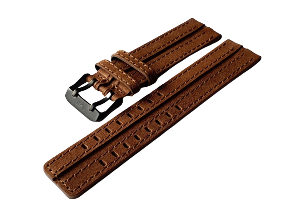 Originální kožený řemínek Vostok Europe je určený pro model Expedition Compact NH35-592C554. Řemínek je vyroben z kůže v šířce 22 mm s černou sponou a hnědým prošitím.