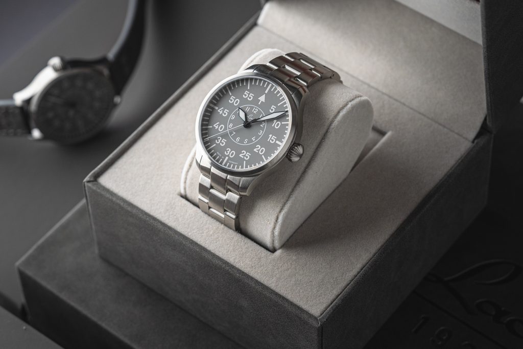 Laco představuje nové barevné provedení svých klasických pilotních hodinek v podobě modelů Augsburg Grau a Aachen Grau, jejichž hlavní barvou se stala šedá. Stříbřitý lesk broušeného pouzdro navazuje na monochromatické barevné schéma a tvoří harmonický celek s matným číselníkem. Zejména v dnešní uspěchané době často zatoužíme po klidu a odpočinku a rádi se uchýlíme k jednoduchým a prostým věcem. Minimalismus a monochromatické barvy mají uklidňující a relaxační efekt. Jednobarevné vzory, zastoupené nejčastěji neutrální bílou, černou a právě šedou jsou nadčasové a ne náhodou je v módním světě šedá často označována novou černou, protože není tak kontrastní a je ideálním doplňkem mnoha barev. Modely kolekce Grau teprve podruhé v řadě Pilot Basic přichází s tepelně modřenými ručkami.
