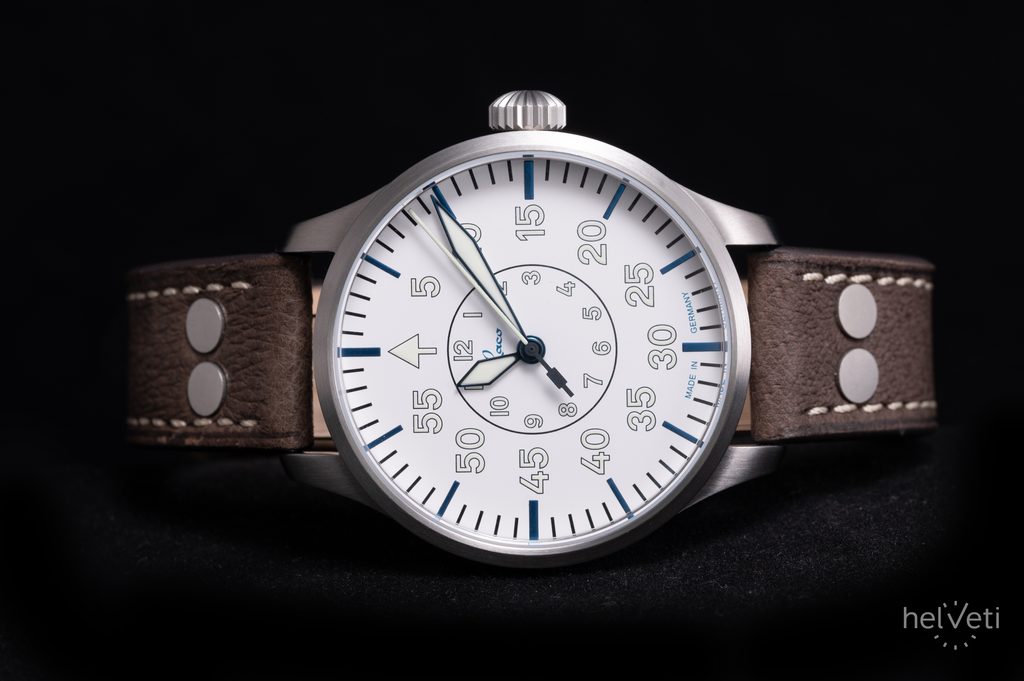 Německé hodinky Laco Aachen 39 jsou limitovanou edicí omezenou pouhými 250 kusy. Na první pohled zaujmou netypickým bílým číselníkem a klasickým pilotním designem, který se vyznačuje čistotou a skvělou přehledností, díky čemuž se nejen u hodinkových fanoušků těší velké oblibě.