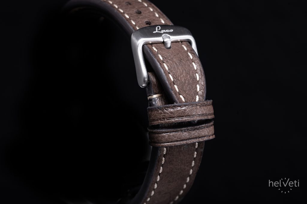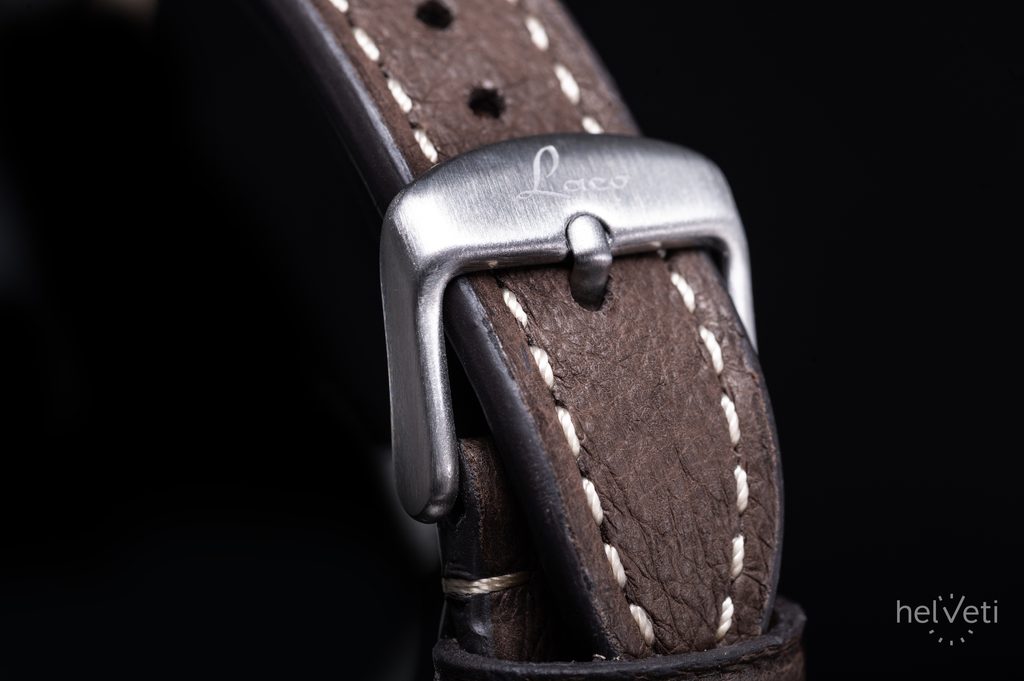 Ocelové pouzdro hodinek Laco Flieger Augsburg Polar 39 doplňuje tmavě hnědý kožený řemínek s kontrastním světlým prošitím a výraznými nýty. Poháněny jsou mechanickým strojkem s automatickým nátahem Laco 2S (základ Miyota 82S0), nabízejícím rezervou chodu kolem 42 hodin, funkci zastavení vteřinovky při nařizování času (hacking) a možnost manuálního nátahu. Mnohé potěší možnost pozorovat chod stroje skrze průhledné dýnko opatřené safírovým sklíčkem. Voděodolnost těchto hodinek je 50 m (5 ATM). Průměr pouzdra je 39 mm, délka (lug-to-lug) 46,5 mm, hodinky tak dobře sednou na většinu pánských, ale i mnohá dámská zápěstí.