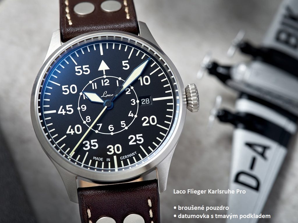Německé hodinky Laco Karlsruhe Pro 37 Handwinding na první pohled zaujmou typickým pilotním designem, který se vyznačuje čistotou a skvělou přehledností, díky čemuž se nejen u hodinkových fanoušků těší velké oblibě.