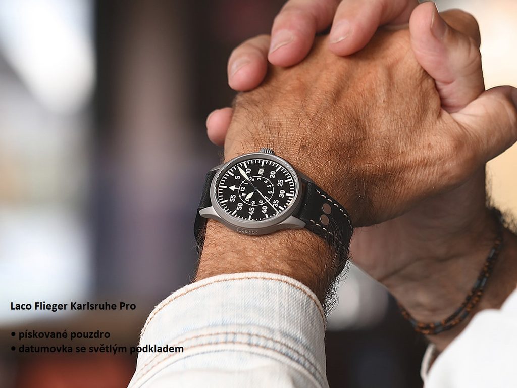 Laco Karlsruhe Pro 37 Handwinding kombinují moderní prvky s klasickými z původních pilotních hodinek používaných za 2. světové války. Ocelové broušené pouzdro hodinek Laco Flieger Pro Karlsruhe 37 Handwinding se zahnutými nožkami pro větší komfort doplňuje hnědý kožený řemínek s kontrastním prošitím a výraznými nýty. Bok pouzdra nese označení FL23883, které bylo klasifikačním číslem. Voděodolnost těchto hodinek je 200 m (20 ATM), podpořena je šroubovací korunkou a zvládnou tedy plavání. Průměr pouzdra je 37 mm, délka (lug-to-lug) 44,5 mm, hodinky tak dobře sednou na pánská i dámská zápěstí.
