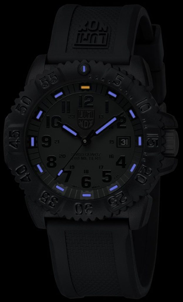 Černá (Blackout) varianta oblíbeného modelu Luminox 3051! Hodinky Luminox 3051.BO SEA pocházejí z kolekce Navy SEAL Colormark 3050 Series, která vznikla během spolupráce Luminoxu a jednotek Navy Seals. Model zaujme odolným karbonovým pouzdrem a tritiovou luminiscencí LLT. Ta zajistí čitelnost hodinek ve tmě až na 25 let. Číselník chrání antireflexní minerální sklíčko a vodotěsnost je 200 metrů - vhodné na plavání i rekreační potápění.