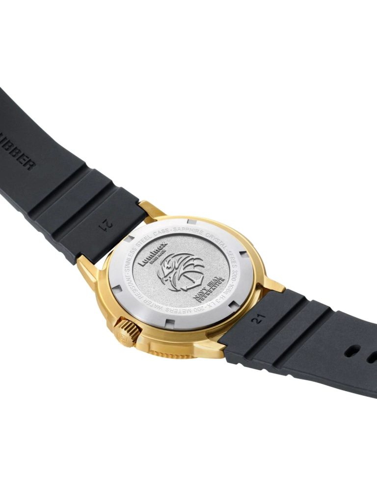 Pánské hodinky Luminox Navy SEAL Foundation Series XS.3221.NSF pocházejí z kolekce Navy SEAL která vznikla během spolupráce Luminoxu a amerických záchranných jednotek Navy Seals. Letos tato spolupráce oslavuje 25 let. Největší předností hodinek je tritiová luminiscence, která zajistí čitelnost hodinek ve tmě až na 25 let a pouzdro z ušlechtilé oceli se zlatou PVD úpravou. Číselník chrání antireflexní safírové sklíčko a vodotěsnost je 200 metrů - vhodné na plavání i rekreační potápění. S vysokou vodotěsností je spojené využití i jednosměrně otočné, potápěčské lunety.