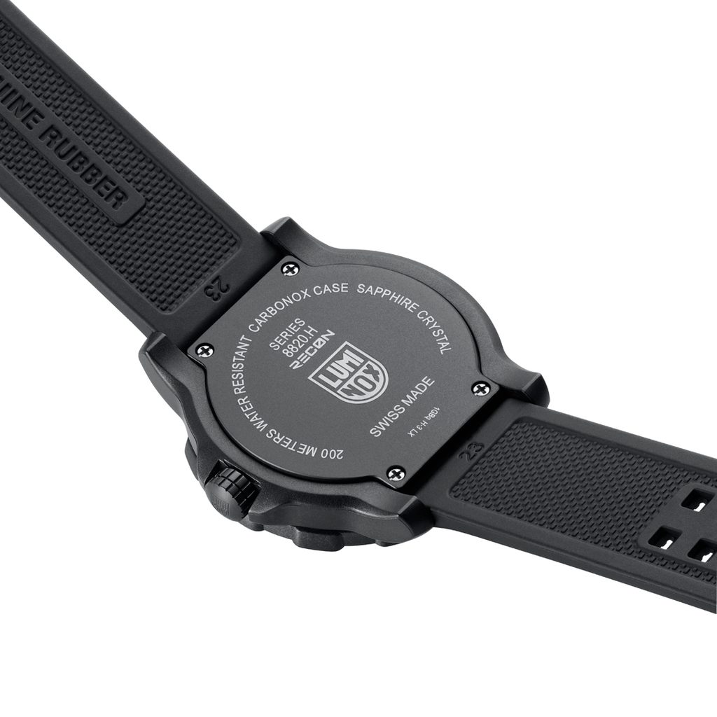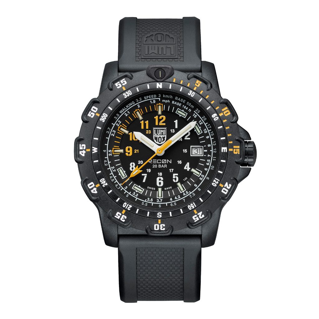 Luminox Recon Pointman XL.8825.H.SET - ideální pomocník pro orientaci v terénu. Lehké karbonové pouzdro doplňuje antireflexní safírové sklíčko a vodotěsnost 200 metrů (plavání i rekreační potápění). Kromě tritiové luminiscence LLT, která zajistí čitelnost hodinek ve tmě až na 25 let bez nutnosti nasvěcován. Díky otočené lunetě a funkcím na ciferníku si můžete změřit rychlost chůze, zjistit kudy se vydat nebo určit azimut. Na hodinkách také naleznete datum na klasické polohu č. 3.