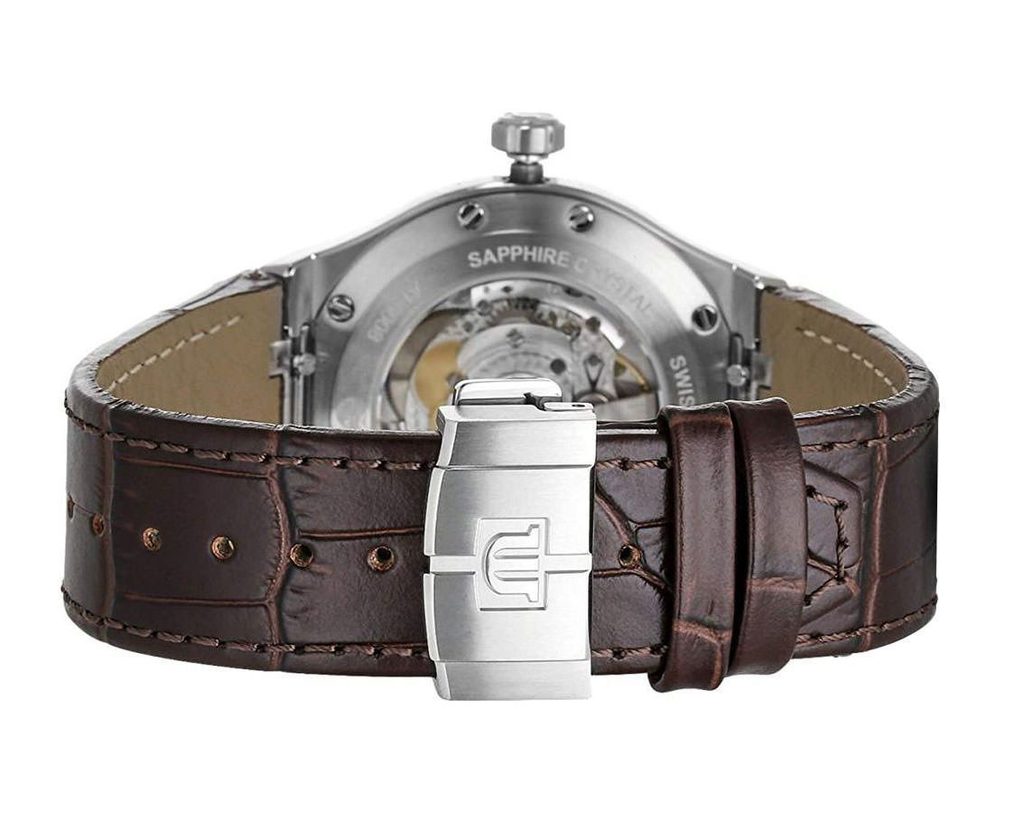 Hodinky Maurice Lacroix Aikon Automatic AI6008-SS001-331-1 mají pouzdro vyrobené z ušlechtilé oceli, které je doplněno hnědým koženým řemínkem. V jeho nitru spolehlivě pracuje švýcarský mechanický strojek s automatickým nátahem ML115, jehož chod můžeme pozorovat skrze průhledné zadní víko. Ten vychází ze spolehlivého strojku Sellita SW200, běží na frekvenci 28800 polokmitů za hodinu a disponuje 26 kameny. Rezerva nátahu činí standardních 38 hodin. Rotor automatického nátahu je zdoben vertikálními Ženevskými pruhy (Côtes de Genève). Strojek kromě ukazatele data má také funkci "hacking" (zastavení sekundové ručky při nařízení) a možnost manuálního nátahu korunkou.