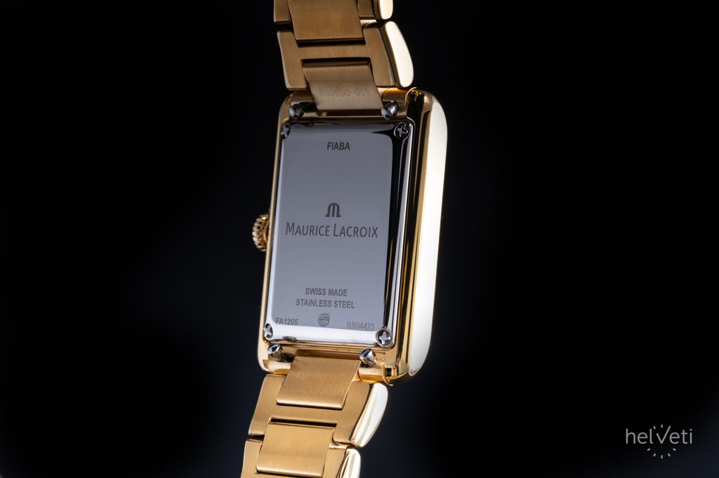 Hodinky Maurice Lacroix Fiaba Square FA1205-PVY02-110-1 mají pouzdro vyrobené z ušlechtilé oceli, které je doplněno náramkem ze stejného materiálu. Pouzdro a náramek jsou opatřeny úpravou PVD barvy žlutého zlata. Hodinky spolehlivě pohání švýcarský bateriový strojek Ronda 762.E.
