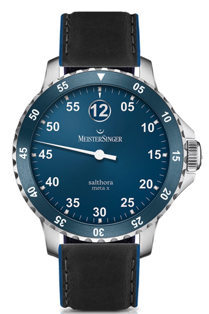 Hodinky MeisterSinger Salthora Meta X SAMX908 spadají do řady Classic Plus a nabízí netradiční, ale o to zajímavější zobrazení času pomocí jedné jediné ručky. Hlavním znakem tohoto modelu je koncept tzv. "jumping hour", zobrazený v okénku na pozici 12. Příznivci kvalitní hodinařiny a netradičních řešení si tedy rozhodně přijdou na své.