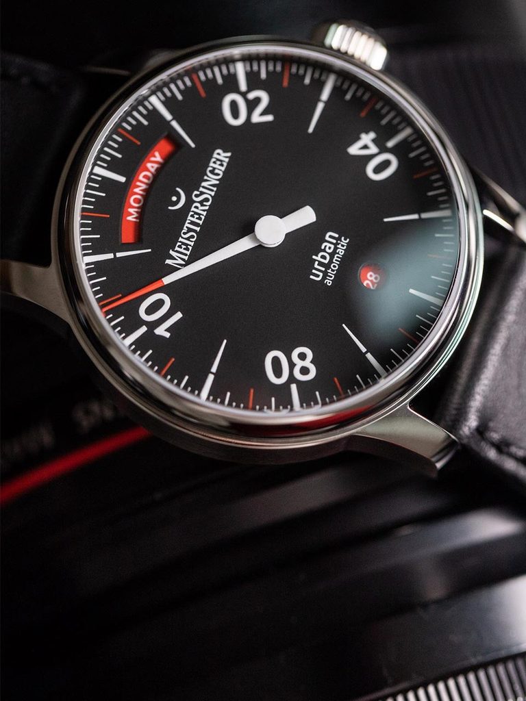 Hodinky MeisterSinger Urban Day Date URDD902 spadají do řady Form & Style a nabízí netradiční, ale o to zajímavější zobrazení času pomocí jedné jediné ručky. Specifickým rysem tohoto modelu je ukazatel data a dne v týdnu ve formě celého slova. Příznivci netradičních řešení si tedy rozhodně přijdou na své.