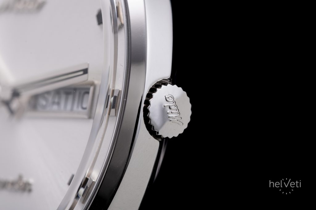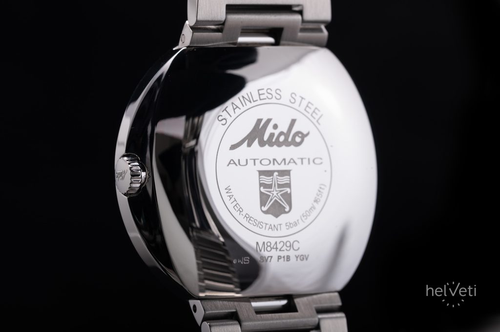 Hodinky Mido M8429.4.21.23 mají pouzdro včetně náramku vyrobené z ušlechtilé oceli 316L. V něm spolehlivě tiká švýcarský mechanický strojek Mido Caliber 80 (základem je ETA C07.621) s automatickým nátahem. Ten pracuje na frekvenci 21600 polokmitů za hodinu, disponuje 25 kameny a především prodlouženou rezervou chodu 80 hodin. Na pozici 3. hodiny najdeme praktický ukazatel data a dne v týdnu.